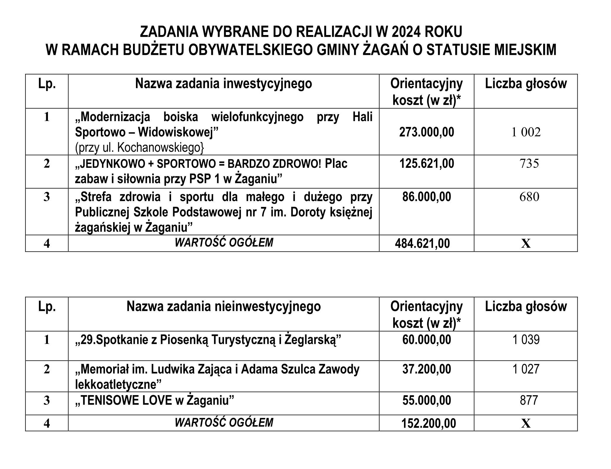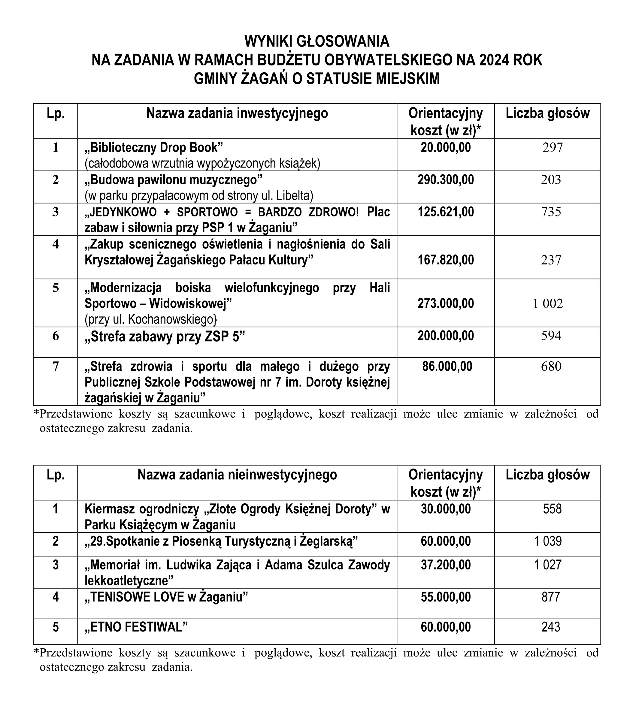 Na stronie zagan.konsultacje.jst znajdą Państwo szczegółowe opisy poszczególnych zadań oraz wyniki tegorocznego głosowania.