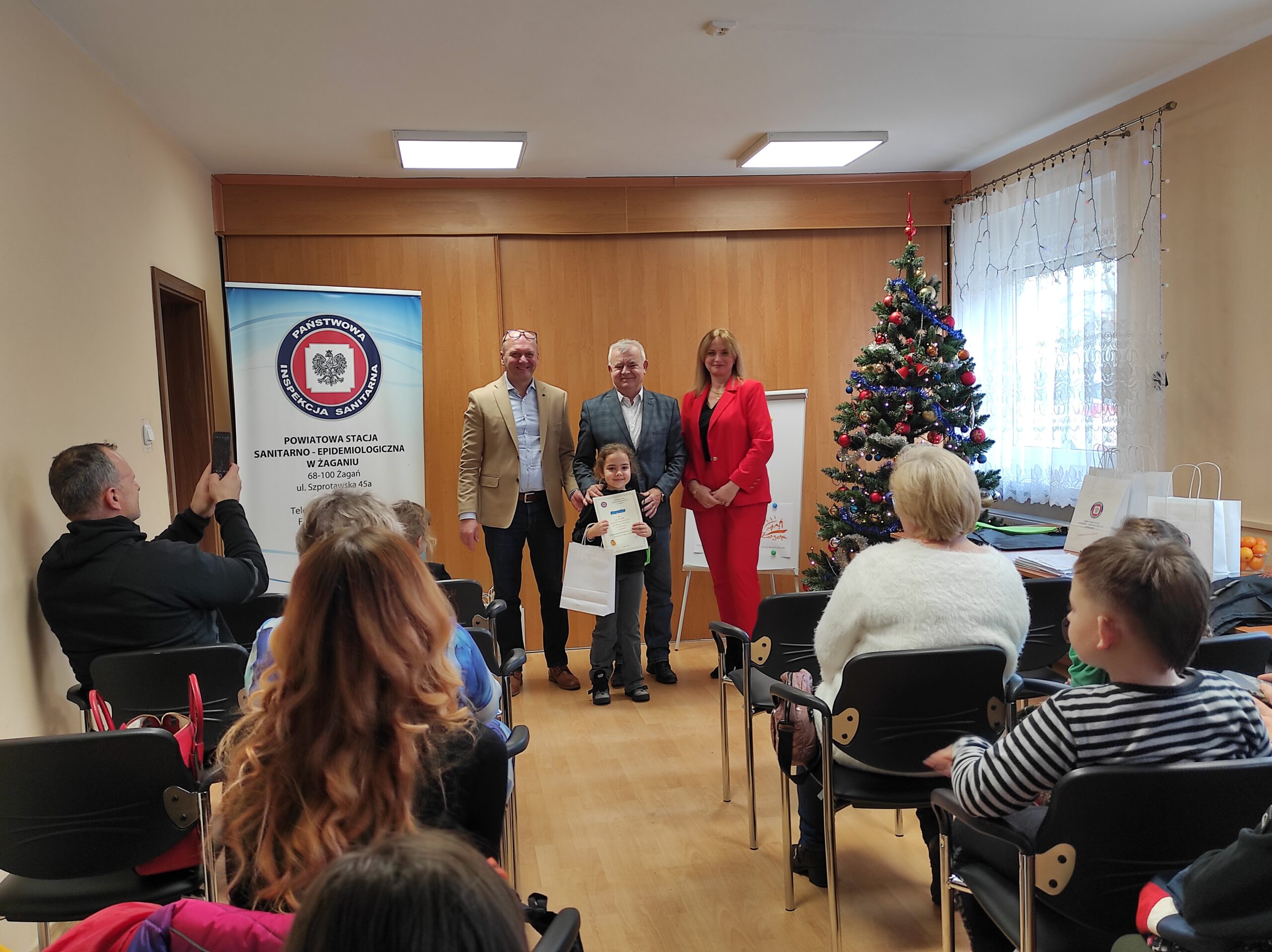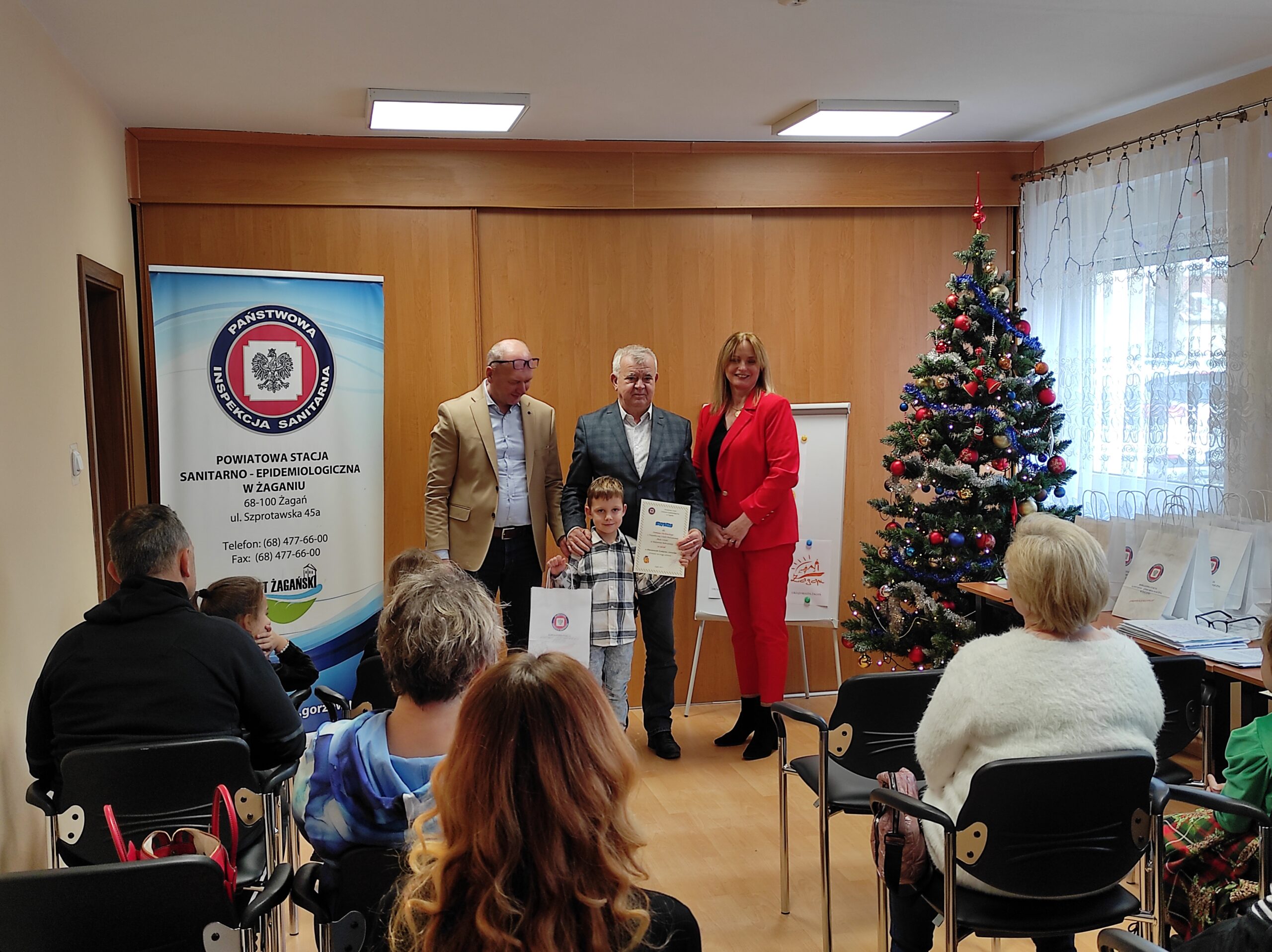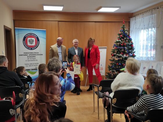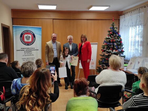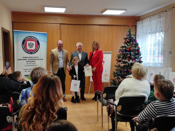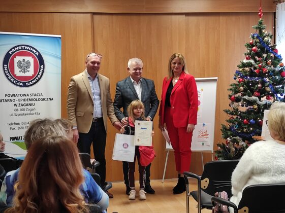 Burmistrz Miasta Żagań Andrzej Katarzyniec wraz z Powiatowym Inspektorem Sanitarnym Jackiem Stępniem uroczyście wręczyli nagrody zwycięzcom:
