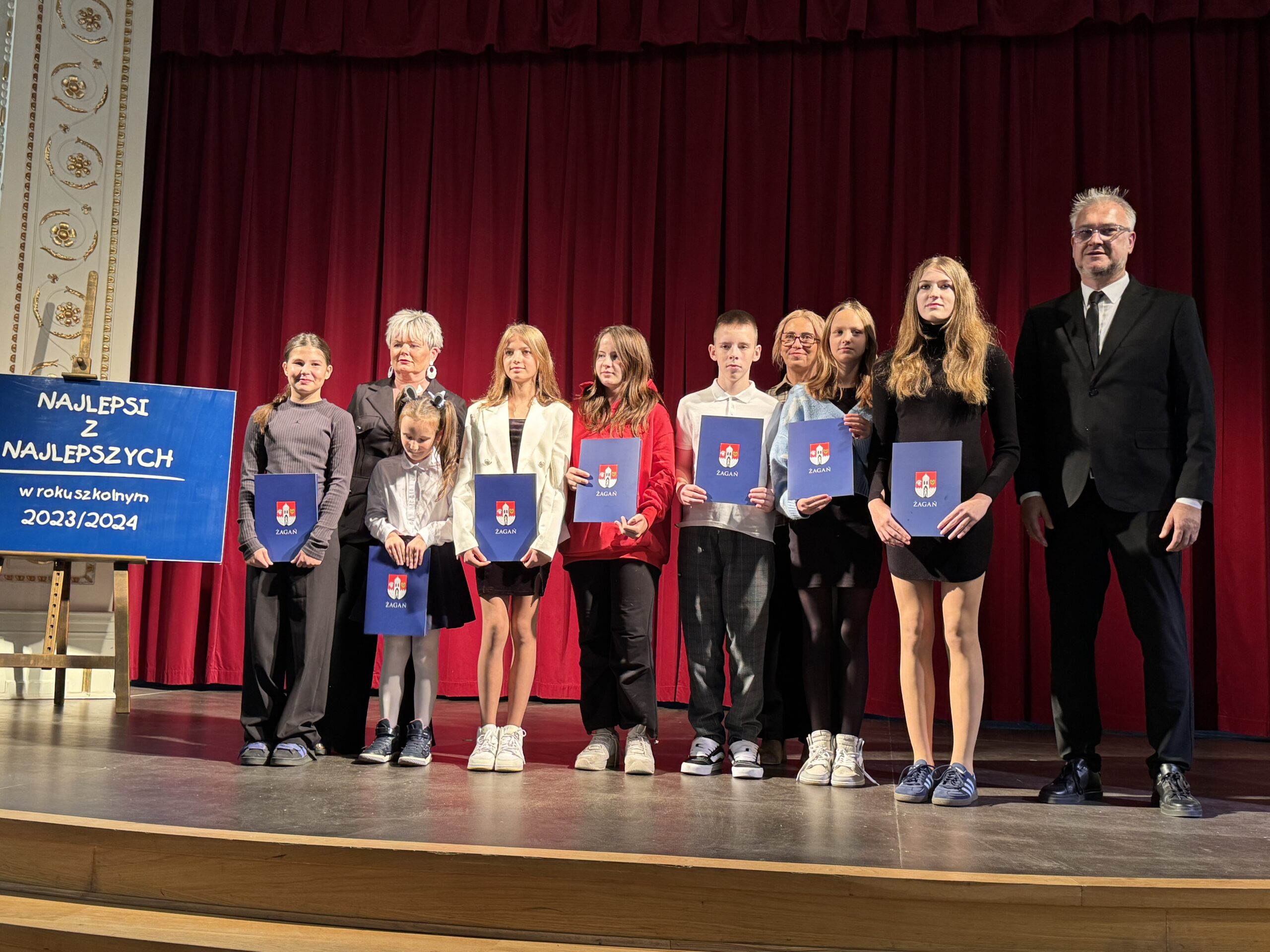 Dziś w Żagańskim Pałacu Kultury odbyła się uroczysta Gala Stypendialna, podczas której Burmistrz Miasta Żagań Sławomir Kowal, Zastępca Burmistrza Miasta Żagań Barbara Starczewska oraz Przewodnicząca Rady Miasta Żagań Katarzyna Kara wręczali stypendia najbardziej uzdolnionym uczniom żagańskich szkół za osiągnięcia w roku szkolnym 2023/2024
