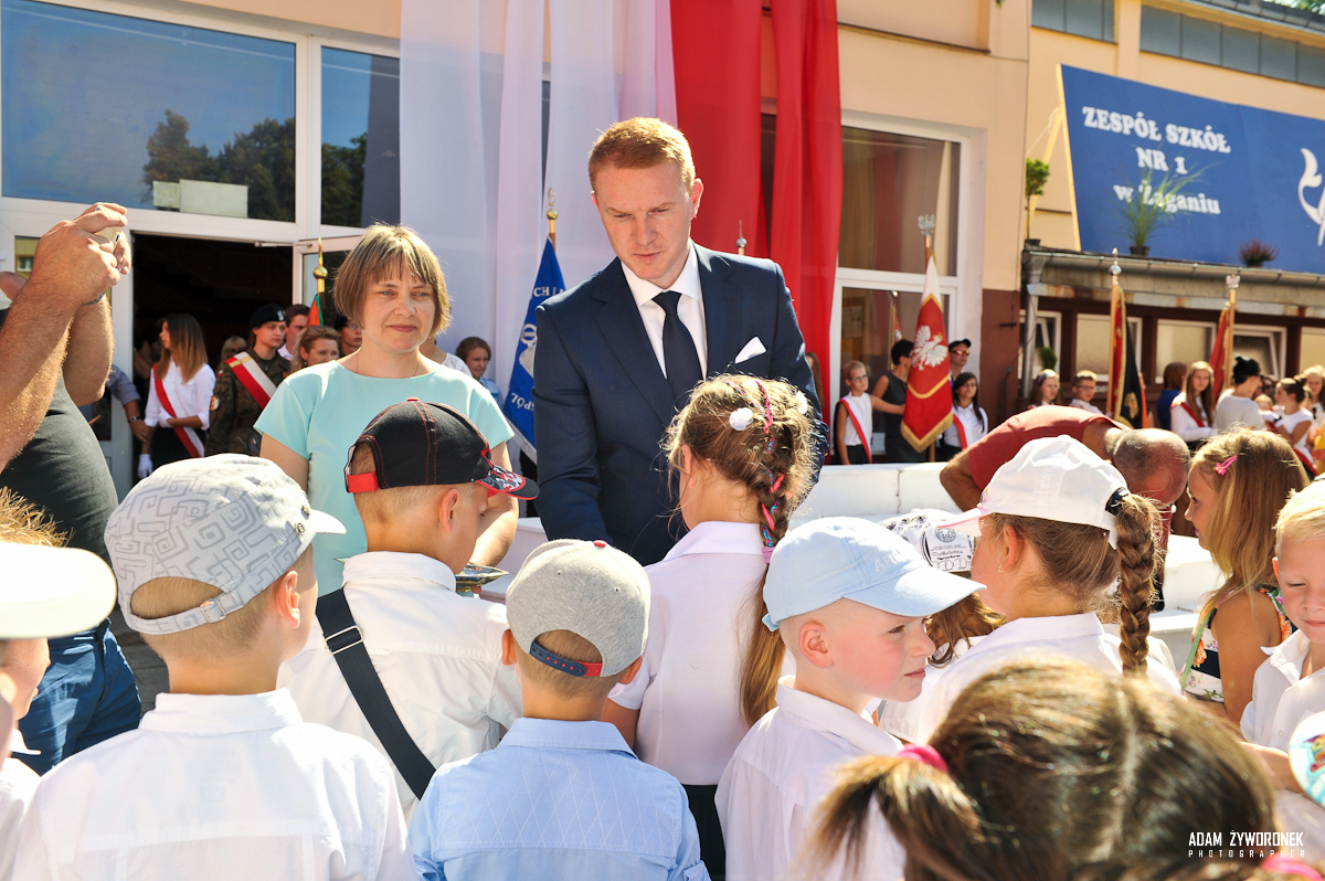 Wojewoda Lubuski Katarzyna Osos życzyła najmłodszym powodzenia w rozpoczynającym się właśnie roku szkolnym oraz dumy z tradycji narodowych. Zaznaczyła, że to właśnie szkoła powinna uczyć postaw obywatelskich. Uczniowie otrzymali od Wojewody tablicę z tekstem Mazurka Dąbrowskiego, a pierwszoklasiści odblaskowe kamizelki, aby ich droga “do” i “ze” szkoły była bezpieczna. Następnie Senator RP Robert Dowhan zapewnił, iż Wojewódzka Inauguracja odbywa się w Żaganiu z uwagi na doskonałe zaplecze oświatowe i dydaktyczne.