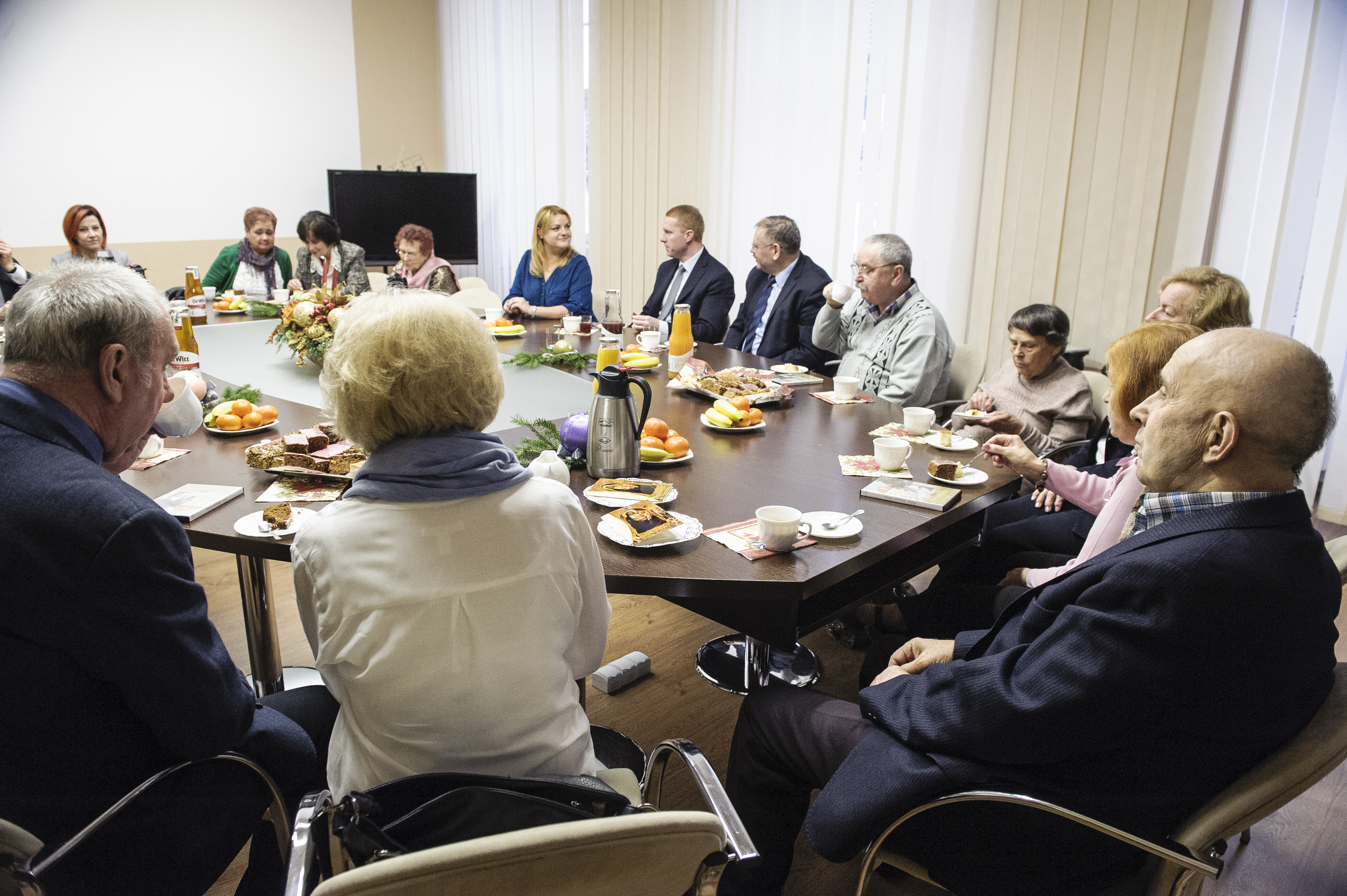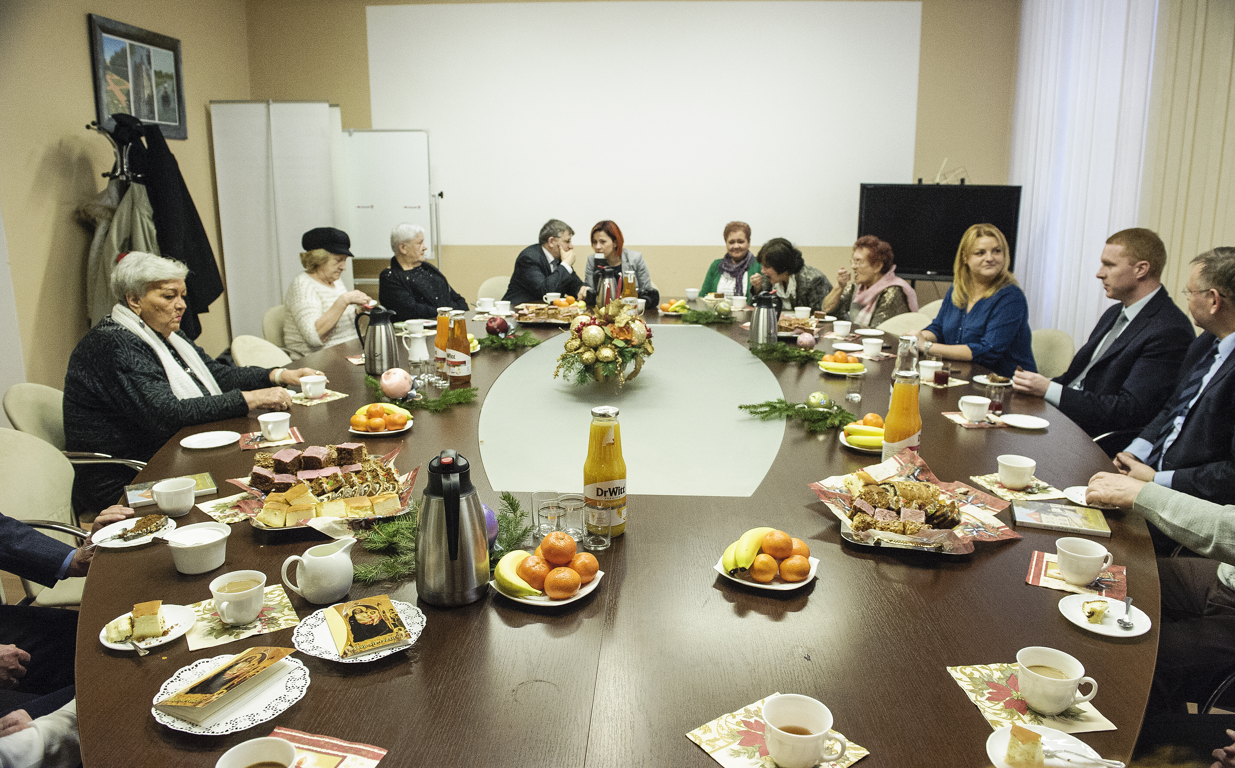 17 dzień grudnia przyniósł kolejną okazję do spotkania się w świątecznej atmosferze z emerytowanymi pracownikami Urzędu Miasta Żagań. Burmistrz Daniel Marchewka podziękował gościom za przybycie i przedstawił aktualną strukturę Urzędu. Jak podkreślił w trakcie powitania, emerytowani pracownicy każdego zakładu i instytucji noszą w sobie pamięć o minionej strukturze, relacjach, zasadach funkcjonowania – są jak twardy dysk komputera, zachowując w swej pamięci fundamentalne wartości danej instytucji. Na zakończenie burmistrz Daniel Marchewka złożył przybyłym życzenia świąteczne i noworoczne. Emerytowani pracownicy dzielili się ze sobą wspomnieniami oraz zabawnymi anegdotami na temat wykonywanej przed laty pracy.