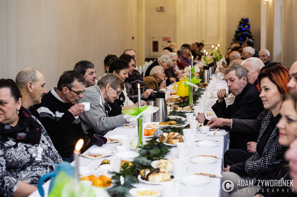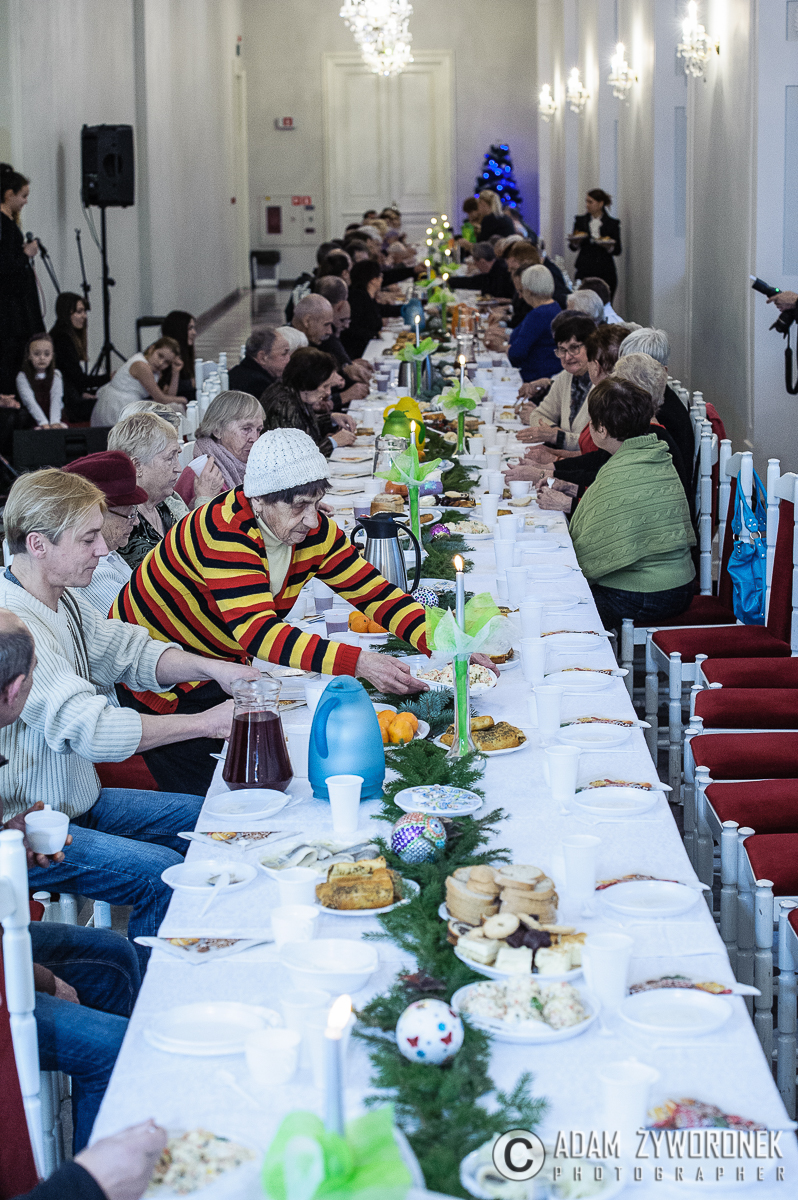 Święta Bożego Narodzenia są czasem biesiad, rodzinnych rozmów, wspólnego oczekiwania i radości. Nie każdy ma możliwość spędzić je w gronie najbliższych. Z myślą o samotnych, często osobach starszych, zorganizowano w Żaganiu tradycyjną Wigilię. Spotkaniu towarzyszyły kolędy wykonywane przez dzieci z sekcji muzycznej Centrum Kultury. Przybyłych gości powitała dyrektor Beata Tołpa, dziękując burmistrzowi Danielowi Marchewce za organizację dzisiejszej Wigilii. Włodarz miasta podkreślił, iż spotkanie z osobami samotnymi ma w dzisiejszych czasach wymiar szczególny, ponieważ pojęcie to zmieniło swe oblicze – samotności coraz częściej zaznać można wśród ludzi, czasem w rodzinie.