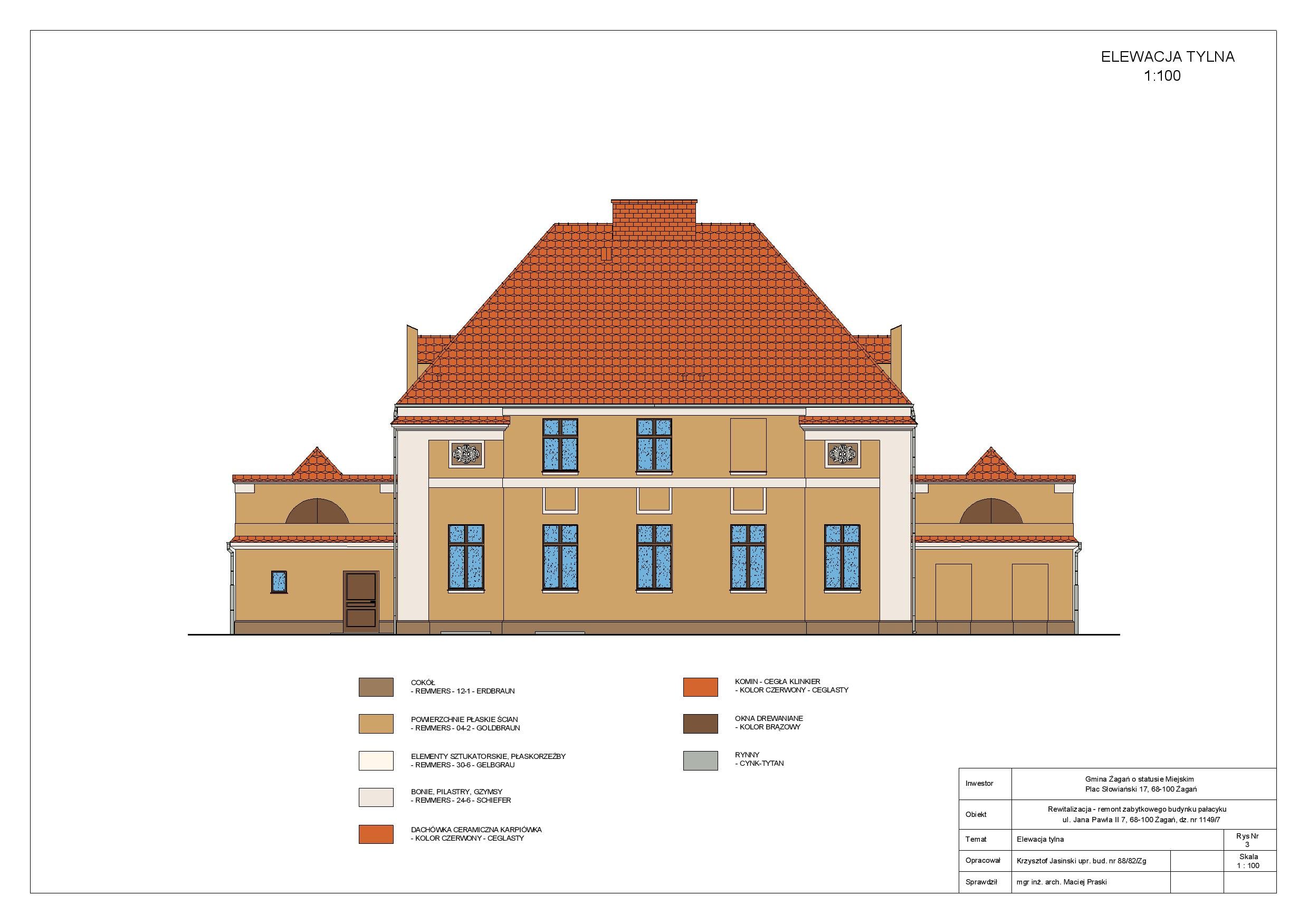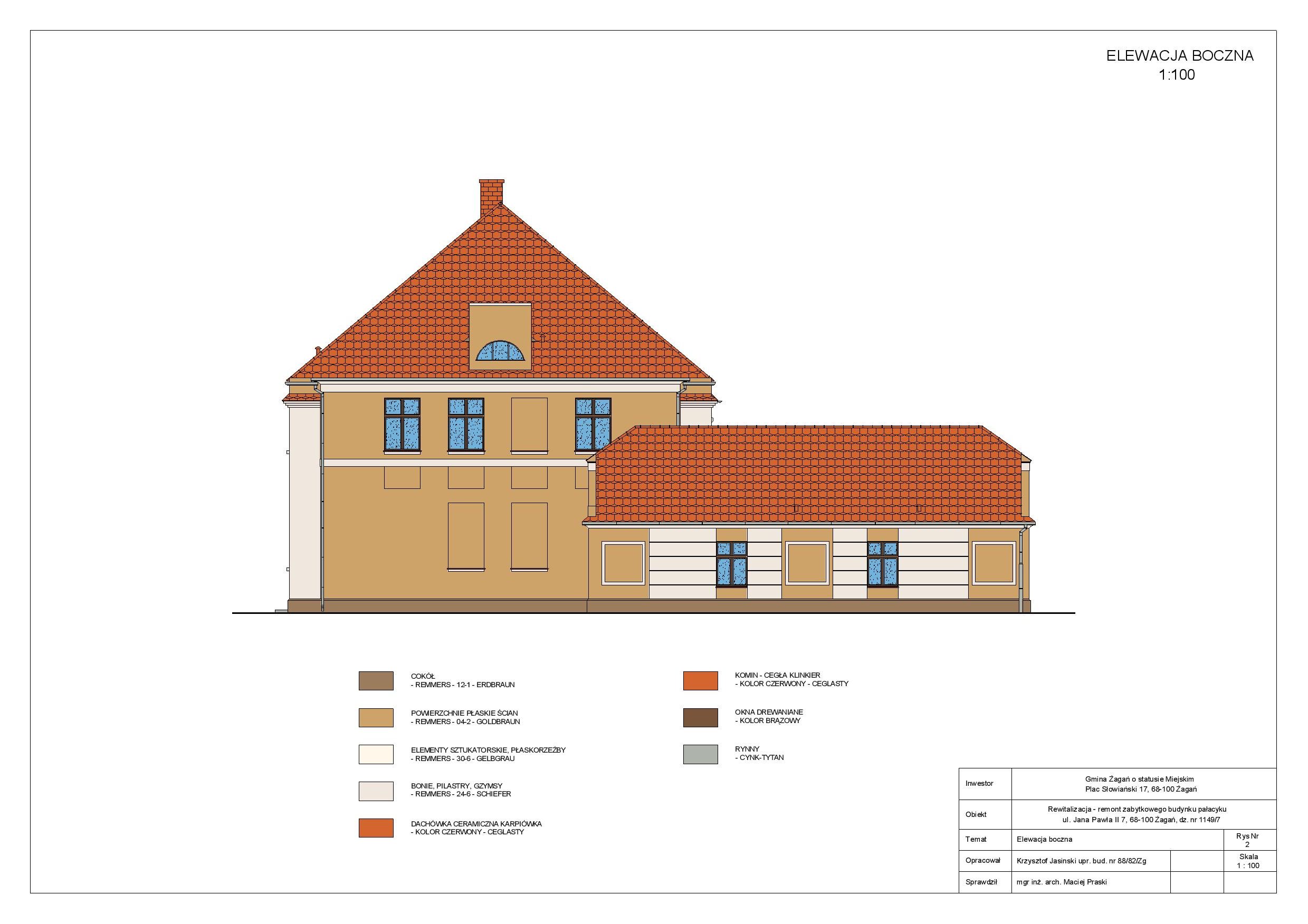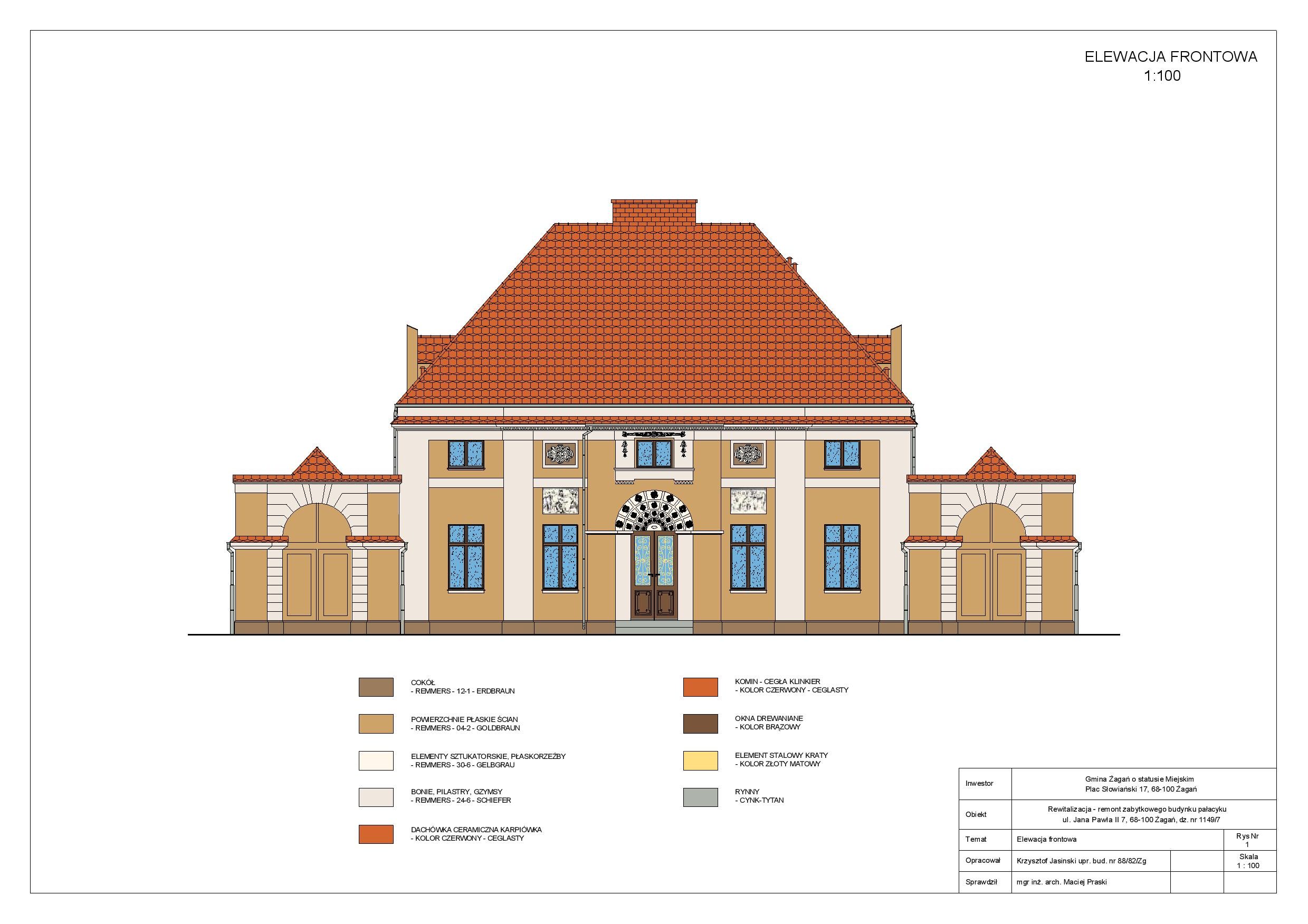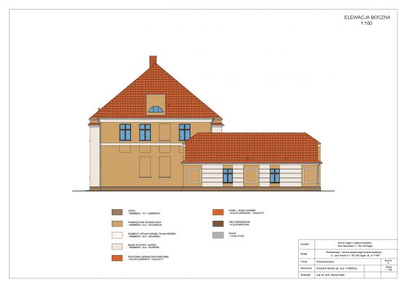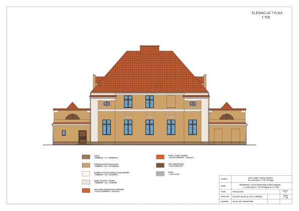 W ramach projektowanych prac budowlanych planuje się kompleksowy remont budynku pałacyku, w tym: wymianę pokrycia dachowego, wykonanie nowej elewacji budynku, wymianę posadzek na parkiety oraz posadzki granitowe, wymianę stolarki okiennej na nową drewnianą, remont pomieszczeń, wykonanie nowych izolacji ścian zewnętrznych i posadzek na parterze, wymianę wszystkich instalacji wewnętrznych, zmianę technologii kotłowni na kotłownię opalaną gazem, zaprojektowanie i wykonanie we wszystkich pomieszczeniach instalacji komputerowej i alarmowej.
