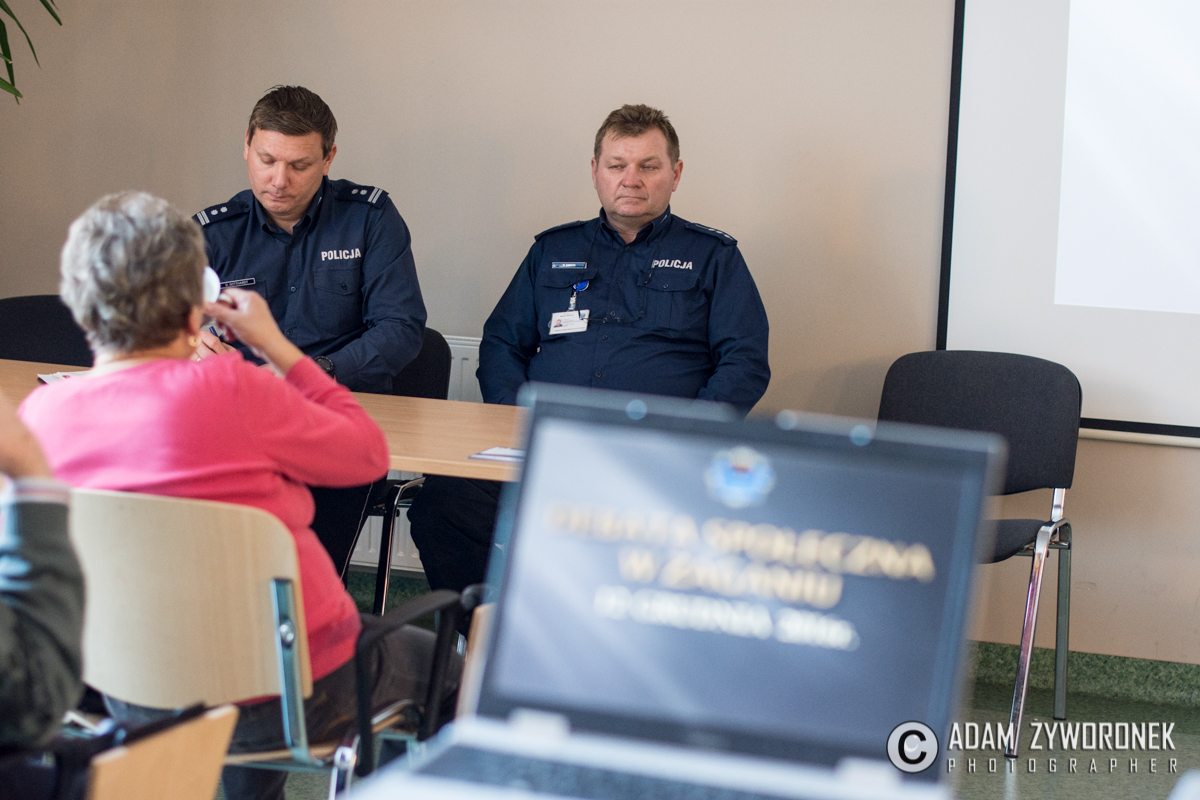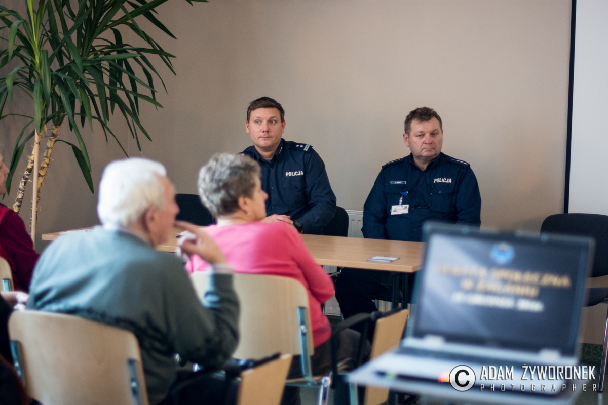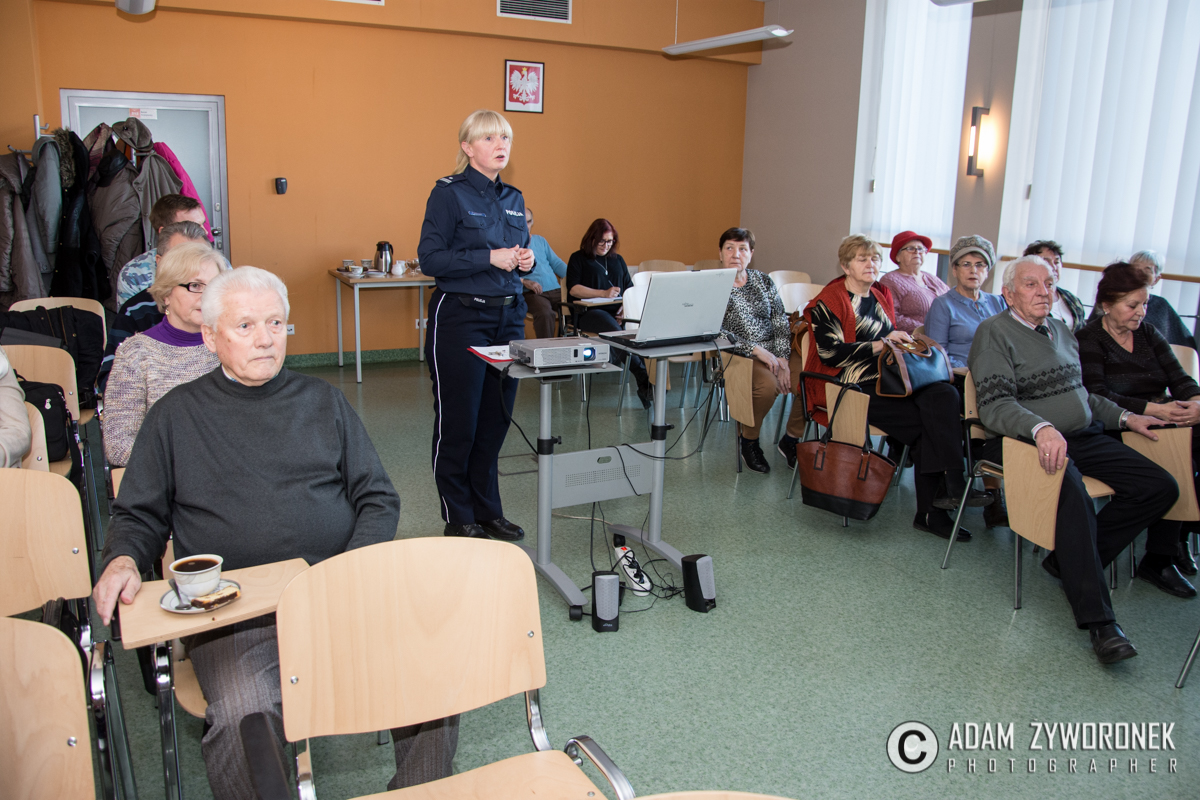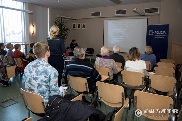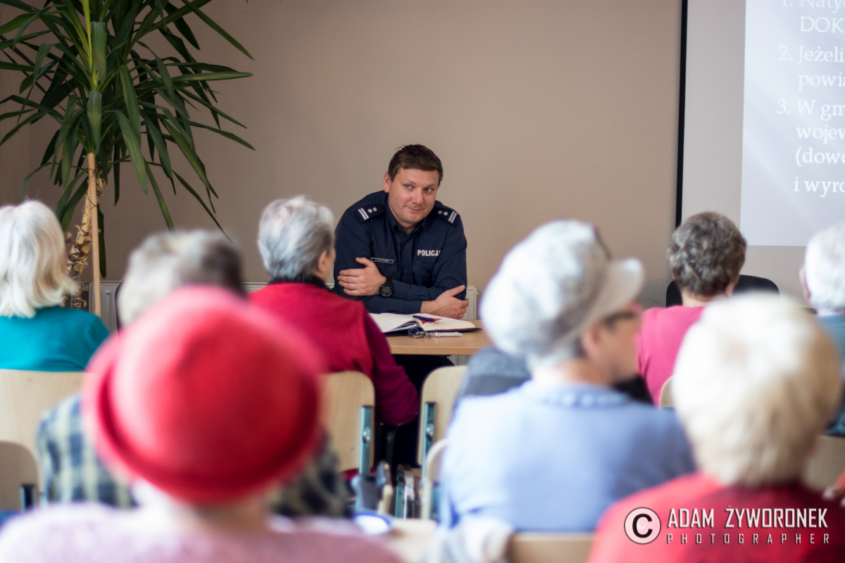 Jednym z ważniejszych tematów, poruszanych podczas debaty z seniorami była ochrona przed różnymi oszustami i ochrona swoich dokumentów. – Nigdy nie wolno razem z kartą bankomatową nosić zapisanego kodu PIN – przestrzegała podinsp. S. Woroniec. – W przypadku zgubienia dokumentów należy zgłosić ten fakt w jednostce, która wydała dokumenty. Czyli w swoim magistracie, starostwie, itp., a także w najbliższym punkcie banku. Żeby uniknąć sytuacji, gdy ktoś na nasz dowód osobisty będzie chciał wyłudzić na przykład kredyt bankowy.