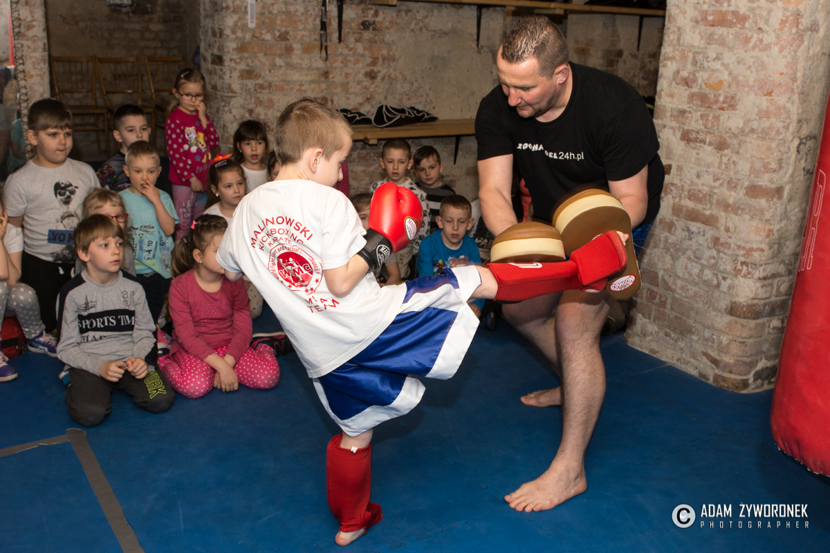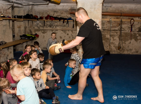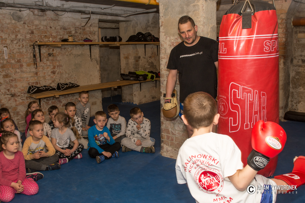 We wtorek (11 kwietnia 2017 r.) przedszkolaki odwiedziły salę treningową Malinowski Team. Trener Paweł Malinowski pokazał im podstawy kick boxingu i zachęcił do uprawiania sportu, co bardzo podobało się szczególnie chłopcom.