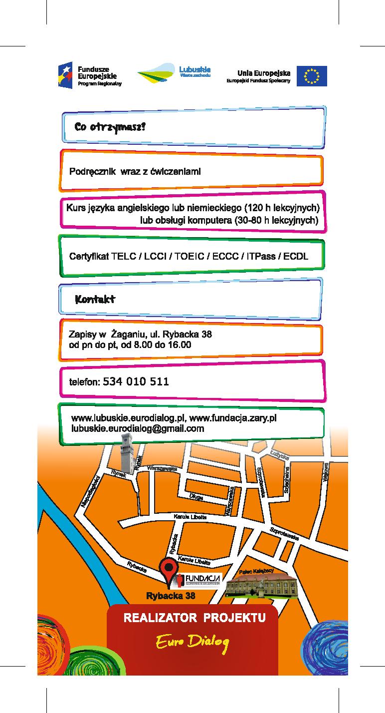 Osoby chętne do udziału w projekcie zapraszamy do wypełnienia formularza zgłoszeniowego, który jest dostępny na stronie internetowej. Karty zgłoszeniowe można składać bezpośrednio w biurze projektu ul Rybacka 38 w budynku byłej Straży Pożarnej(wieżyczka, I piętro) w Żaganiu (od poniedziałku do piątku) od godz. 8:00 do 16:00, bądź poprzez stronę internetową www.lubuskie.eurodialog.pl lub drogą elektroniczną e-mail szuscicka@fundacja.zary.pl , kaczmarczyk@fundacja.zary.pl