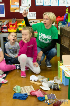 Z sześciolatkami spotkały się Kinga Kruszelnicka i Ewa Alber z Fundacji Rozwoju Ekologicznego i Ochrony Środowiska „Eko Lubusz”. W formie zabawy opowiedziały dzieciom o zagrożeniach dla zdrowia, związanych z niską emisją pyłów. Dzieci dowiedziały się, czego i z jakiego powodu nie wolno palić w piecach i jak segregować odpady. Przedszkolaki przyznawały, że nie wszyscy dorośli, a szczególnie ci starsi przestrzegają tych zasad. Bywa, że dziadkowie nie wiedzą, że nie wolno spalać śmieci. Na zakończenie zajęć dzieci otrzymały ulotki i kredki ufundowane przez burmistrza Daniela Marchewkę i obiecały, że powiedzą dorosłym o tym, czego się dowiedziały.