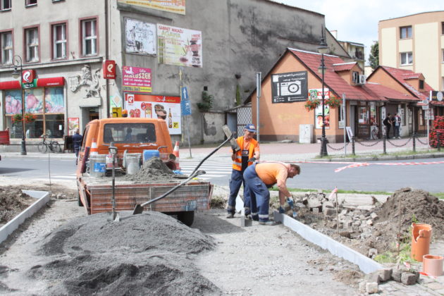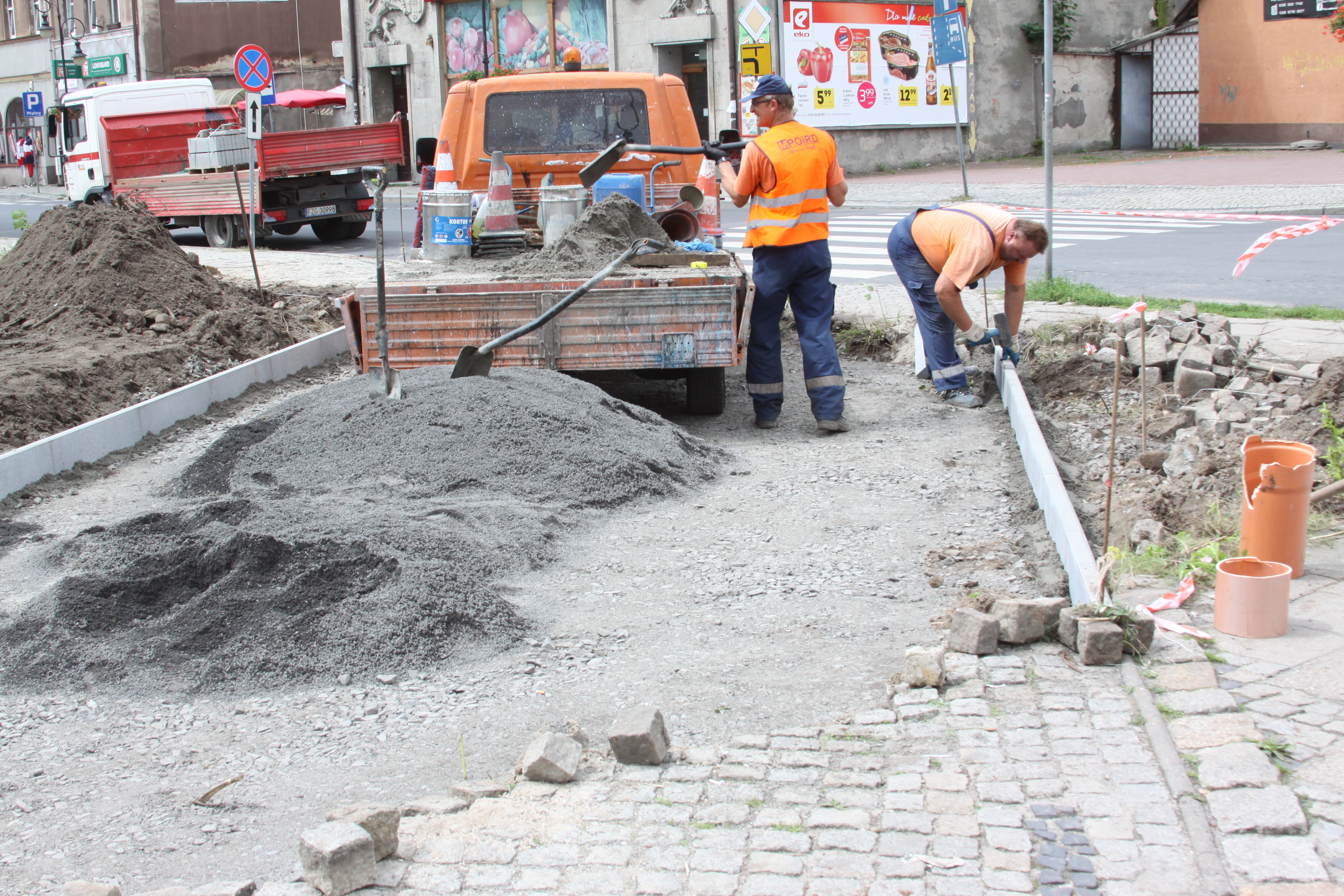 Wczoraj (we wtorek 25 lipca) pracownicy Miejskiego Przedsiębiorstwa Oczyszczania i Robót Drogowych rozebrali blaszane ogrodzenie, które przez dziewięć lat szpeciło miasto. Dzisiaj (w środę 26 lipca) zabrali się za budowę nowego chodnika.