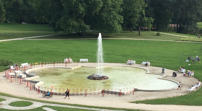 Wszystkim odwiedzającym ostatnio pałac i park żagański nie mogło umknąć, że trwają prace przy największej fontannie. W ramach zadania inwestycyjnego pn. „Modernizacja fontann znajdujących się na terenie Parku Pałacowego w Żaganiu – etap II: Remont fontanny przed oranżerią rampową” obecnie wykonywana jest ostatnia część prac budowlanych, polegająca na montażu zwieńczenia betonowej cembrowiny fontannowej elementami kamiennymi wykonanymi z piaskowca.