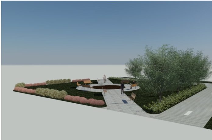Na nowym, miejskim skwerze będą ścieżki i ławki. Na środku stanie kwietnik. Przedstawiamy wizualizację nowej przestrzeni, jednak trwają uzgodnienia i wygląd skweru może jeszcze się zmienić.