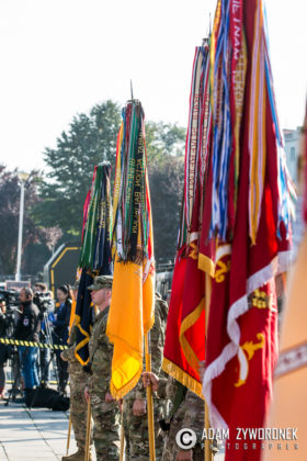 Zebrani na pl. gen. Maczka mieli możliwość zobaczenia niezwykłego ceremoniału wojskowego pożegnania i powitania sztandarów. – Jest on pieczołowicie kultywowany i odtwarzany od 1775 roku – tłumaczy Waldemar Kotula, kustosz Centrum Tradycji Polskich Wojsk Pancernych w Żaganiu. – Na każdym sztandarze są wstęgi upamiętniające działania bojowe Sztyletowej Brygady i jej komponentów.