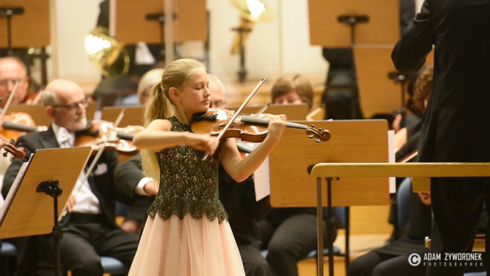 Uściski dłoni profesjonalnych artystów (dyrygenta, koncertmistrzów, muzyków zielonogórskiej orkiestry) i życzenia dalszych sukcesów – z pewnością zachęcą Maję do pracy i walki o kolejne konkursowe laury!