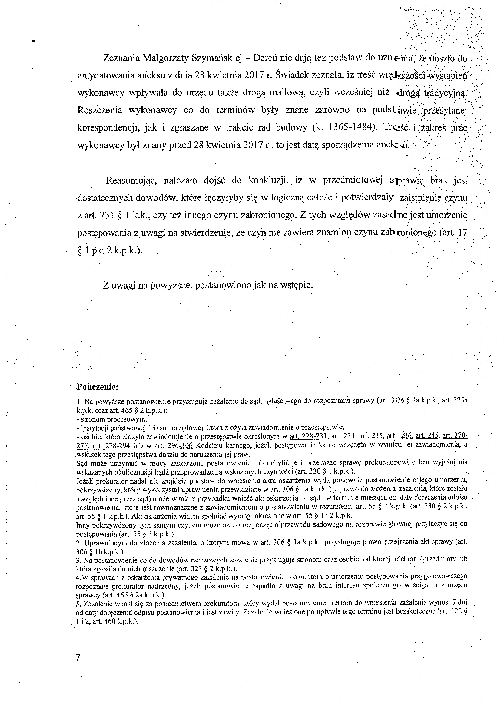 Poniżej treść decyzji prokuratorskiej o umorzeniu śledztwa