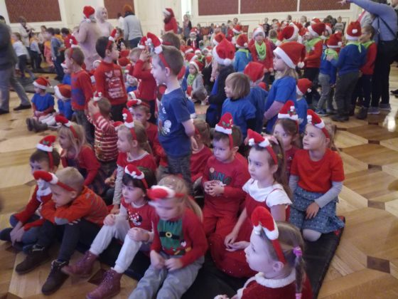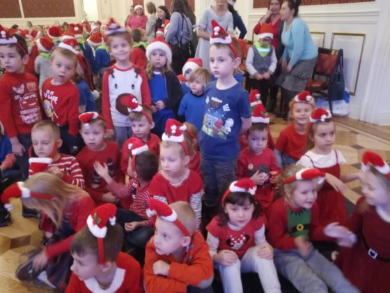 Dzieci bawiły się w dwóch turach. W pierwszym przedstawieniu, o godz. 9.00 wzięły udział przedszkolaki z PSP 1, 3, 5 oraz Miejskiego Przedszkola nr 6. W sumie 13 grup i 306 dzieci. Na godz. 11.00 przyszły maluchy z PSP 2m MP 2, 5 i 3. Na Sali było 335 dzieciaków. Większość z nich ubrała się w czapki Mikołajów i czerwone stroje. – Jesteśmy na mikołajkach w pałacu już po raz trzeci – powiedziały nam: Hania, Ewelinka i Ala z MP 6. – Za każdym razem bardzo nam się podobało. I sam pałac i przedstawienie.
