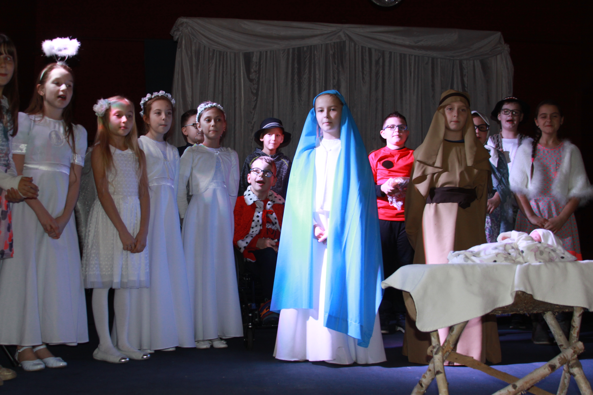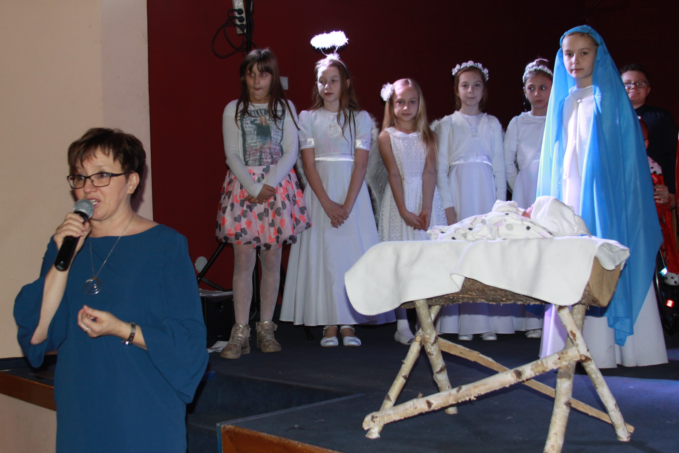 W jasełkach wzięła udział klasa IV C integracyjna, z panią Małgorzatą Marcikowską, która ze wzruszeniem opowiedziała, jak wspaniali, dobrzy, wrażliwi i wyrozumiali są jej wychowankowie. Dzieci, które zdobyły tytuł laureata podczas przeglądu grup kolędniczych i jasełkowych w Pałacu Książęcym zachwyciły seniorów, wśród których byli również emerytowani nauczyciele. Po występie przyszedł czas na wspólne kolędowanie, w które czynnie włączyły się Beata Tołpa, dyrektor Centrum Kultury i Wanda Winczaruk, przewodnicząca Rady Miasta Żagań. Do zebranych dotarł też ksiądz kanonik Władysław Tasior, proboszcz parafii pw. WNMP przy pl. Klasztornym. Pobłogosławił dary i złożył życzenia seniorom.