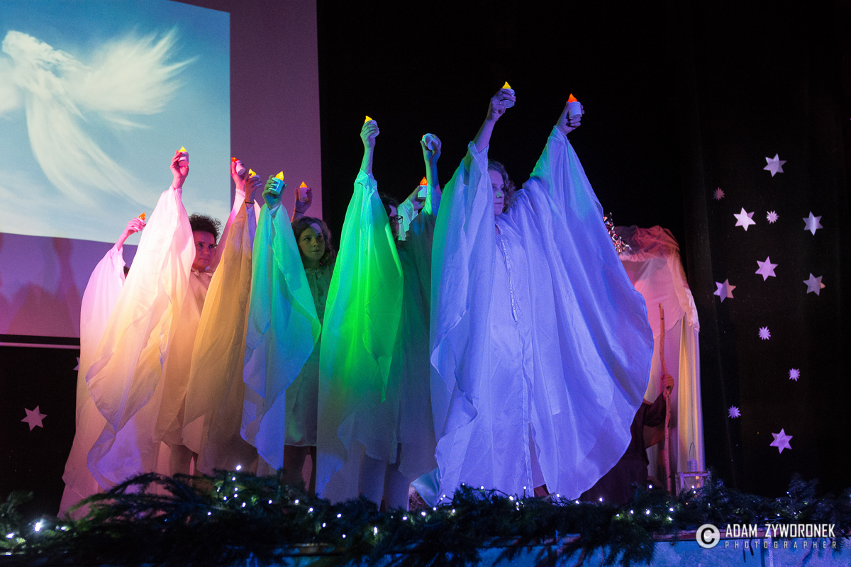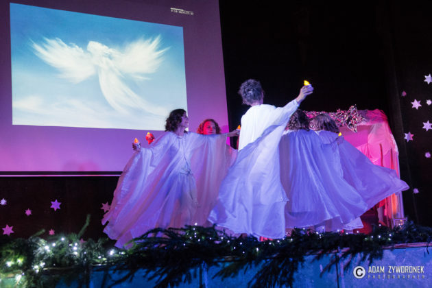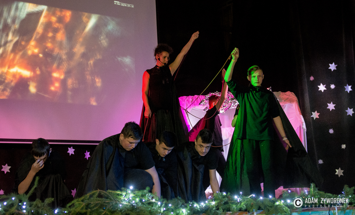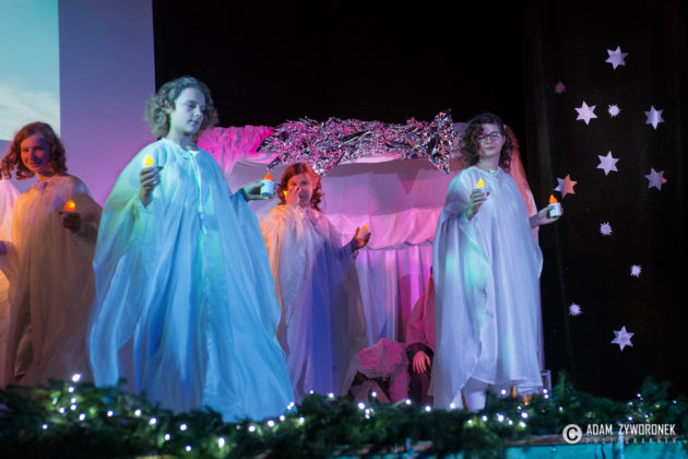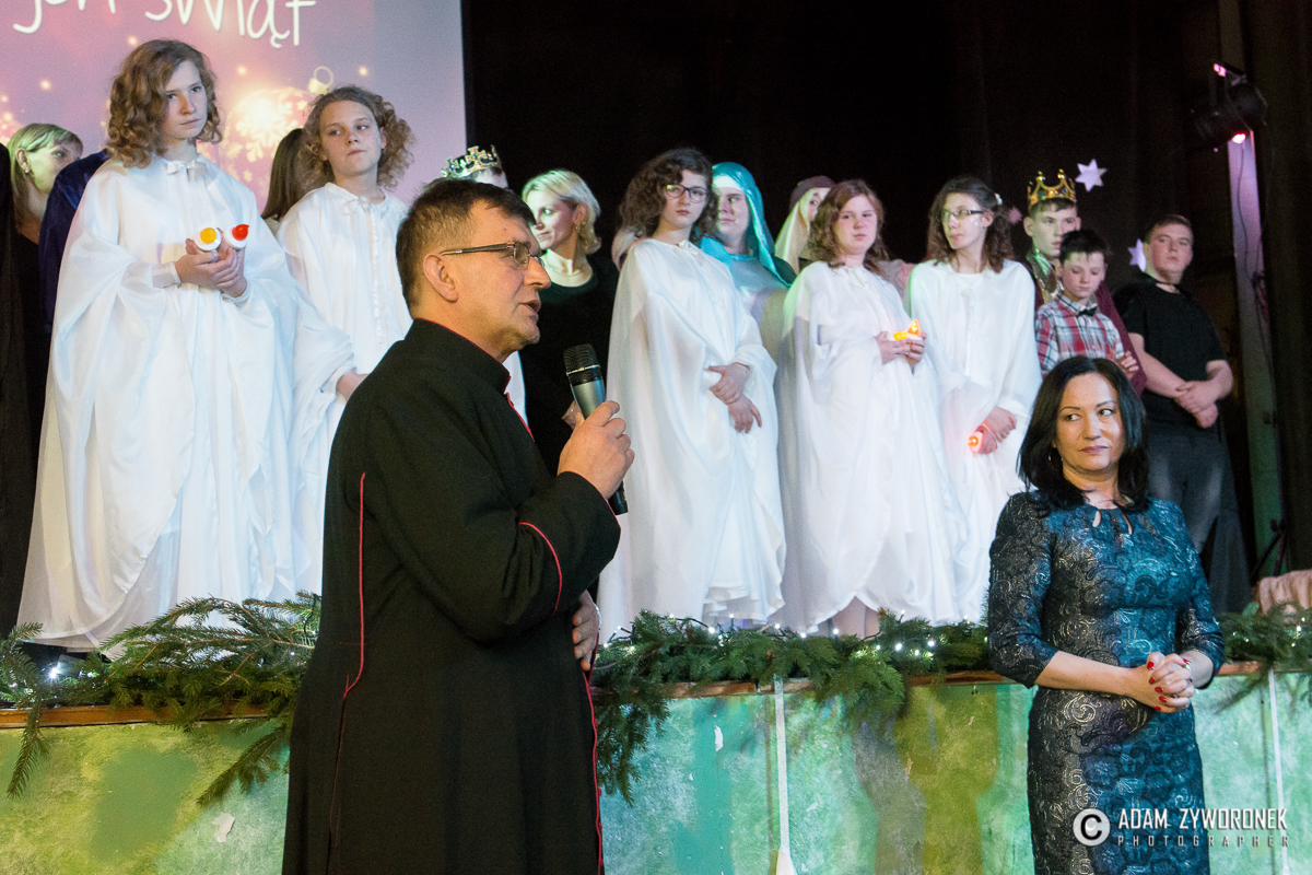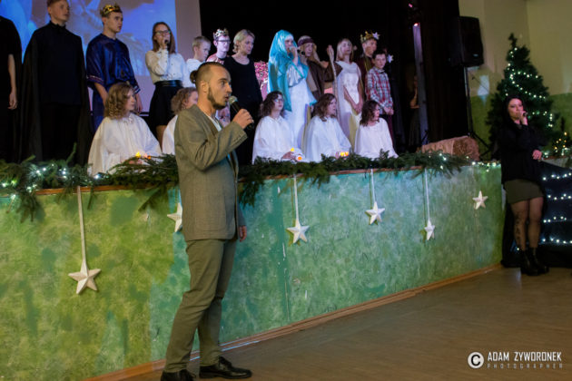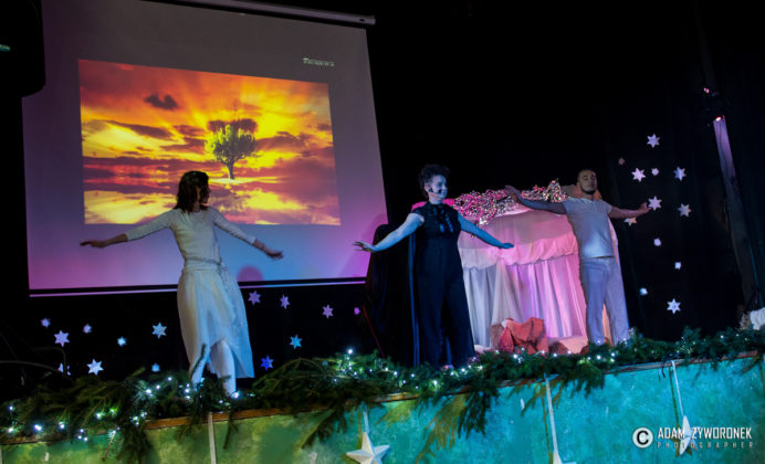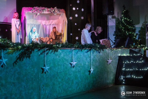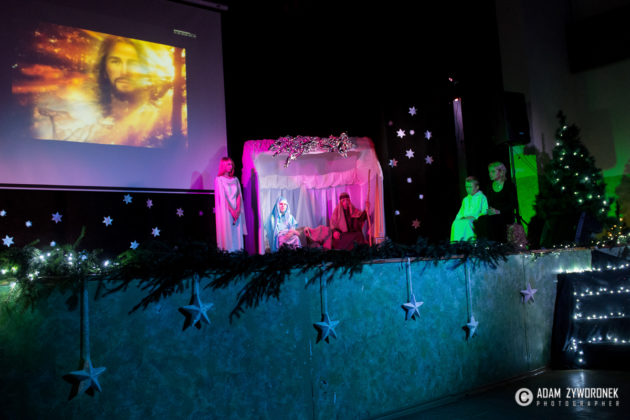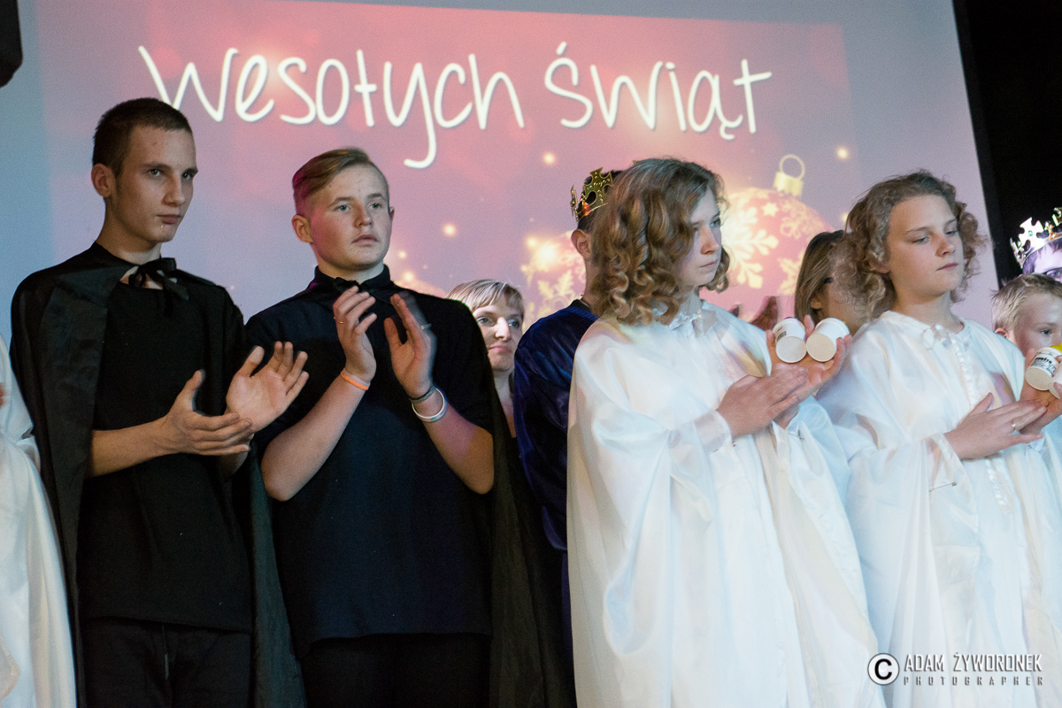 Przedstawienie przygotowały nauczycielki: Katarzyna Nowotyńska i Iwona Ziółkowska, Iwona Rotarska. Dedykowane było ich koleżance, która zmaga się z chorobą nowotworowa. Rozpoczynającą kolędę zagrał Sebastian Dudek z klasy dla dzieci z autyzmem. Pięknie zaśpiewały uzdolnione muzycznie Klaudia Semeniuk i Marlena Sawicka. W kolędzie zamykającej spektakl wystąpili wszyscy jego uczestnicy, z dyrektor Renatą Sochą, która zaznaczyła, że już jako dziecko marzyła o tym, żeby zostać nauczycielką. Jej marzenia się spełniły i dzisiaj może pomagać innym.