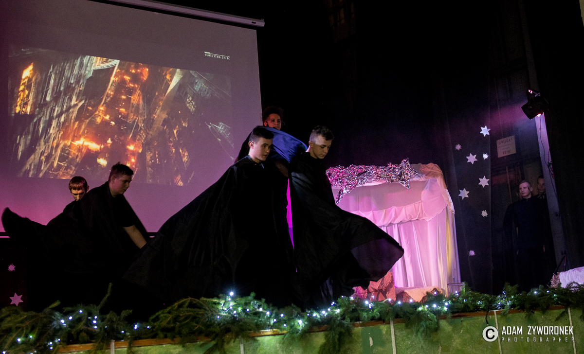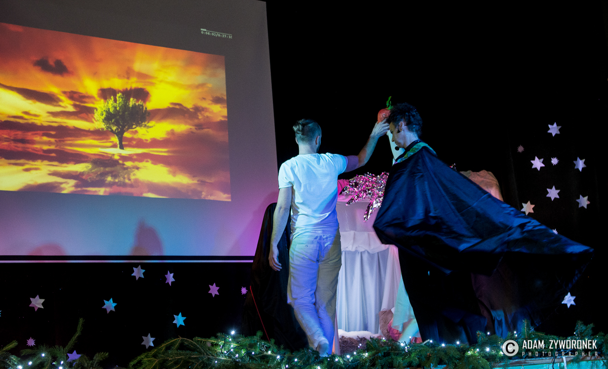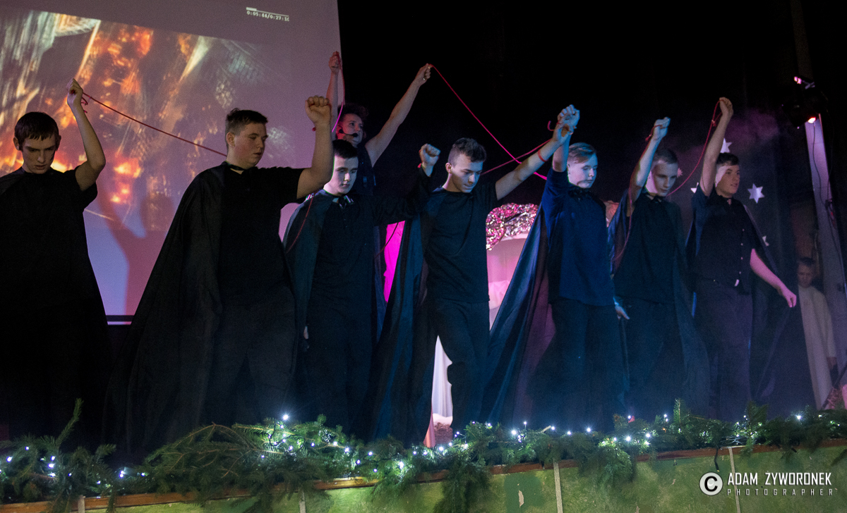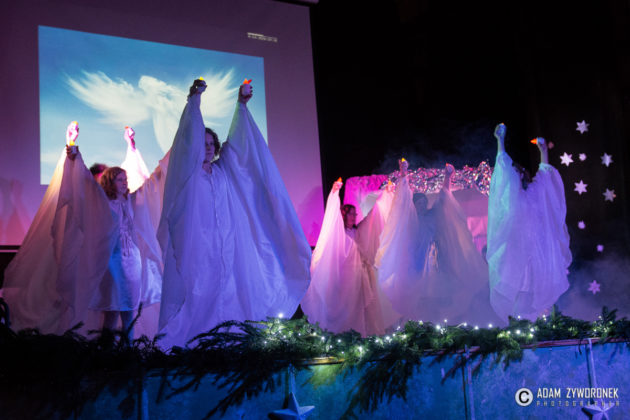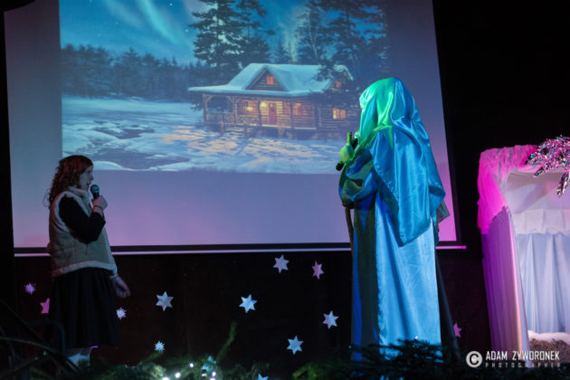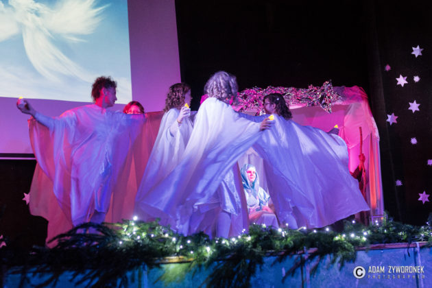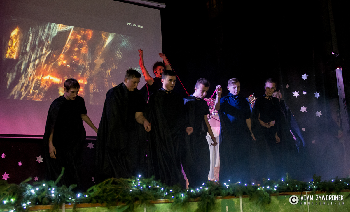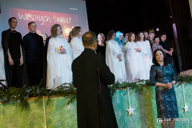 Przedstawienie przygotowały nauczycielki: Katarzyna Nowotyńska i Iwona Ziółkowska, Iwona Rotarska. Dedykowane było ich koleżance, która zmaga się z chorobą nowotworowa. Rozpoczynającą kolędę zagrał Sebastian Dudek z klasy dla dzieci z autyzmem. Pięknie zaśpiewały uzdolnione muzycznie Klaudia Semeniuk i Marlena Sawicka. W kolędzie zamykającej spektakl wystąpili wszyscy jego uczestnicy, z dyrektor Renatą Sochą, która zaznaczyła, że już jako dziecko marzyła o tym, żeby zostać nauczycielką. Jej marzenia się spełniły i dzisiaj może pomagać innym.