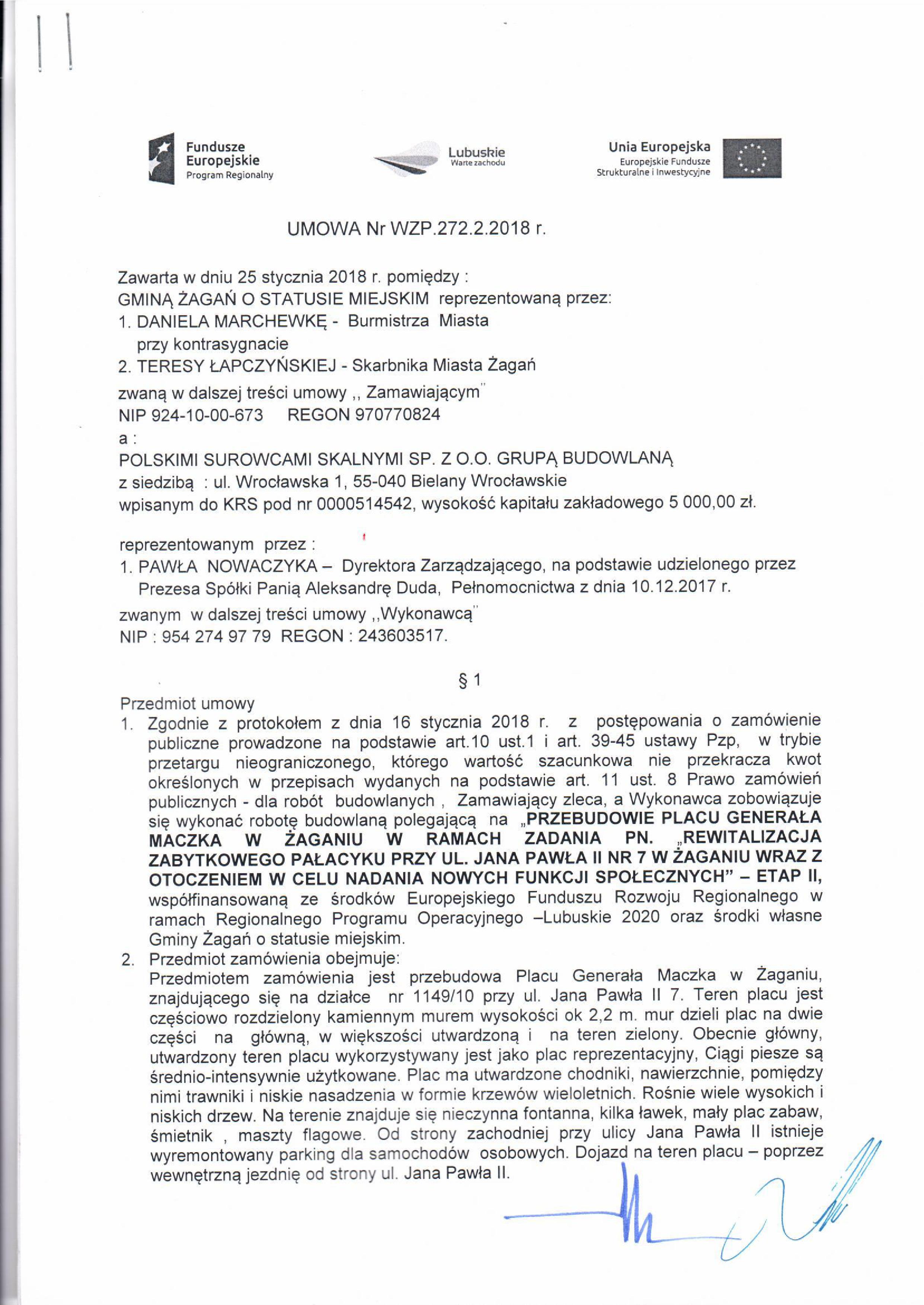 W lutym rozpocznie się rewitalizacja placu. W czwartek 25 stycznia burmistrz Daniel Marchewka podpisał umowę z Pawłem Nowaczykiem, dyrektorem zarządzającym firmą Polskie Surowce Skalne sp. z o.o. z Bielan Wrocławskich, na wykonanie modernizacji pl. gen. Maczka.