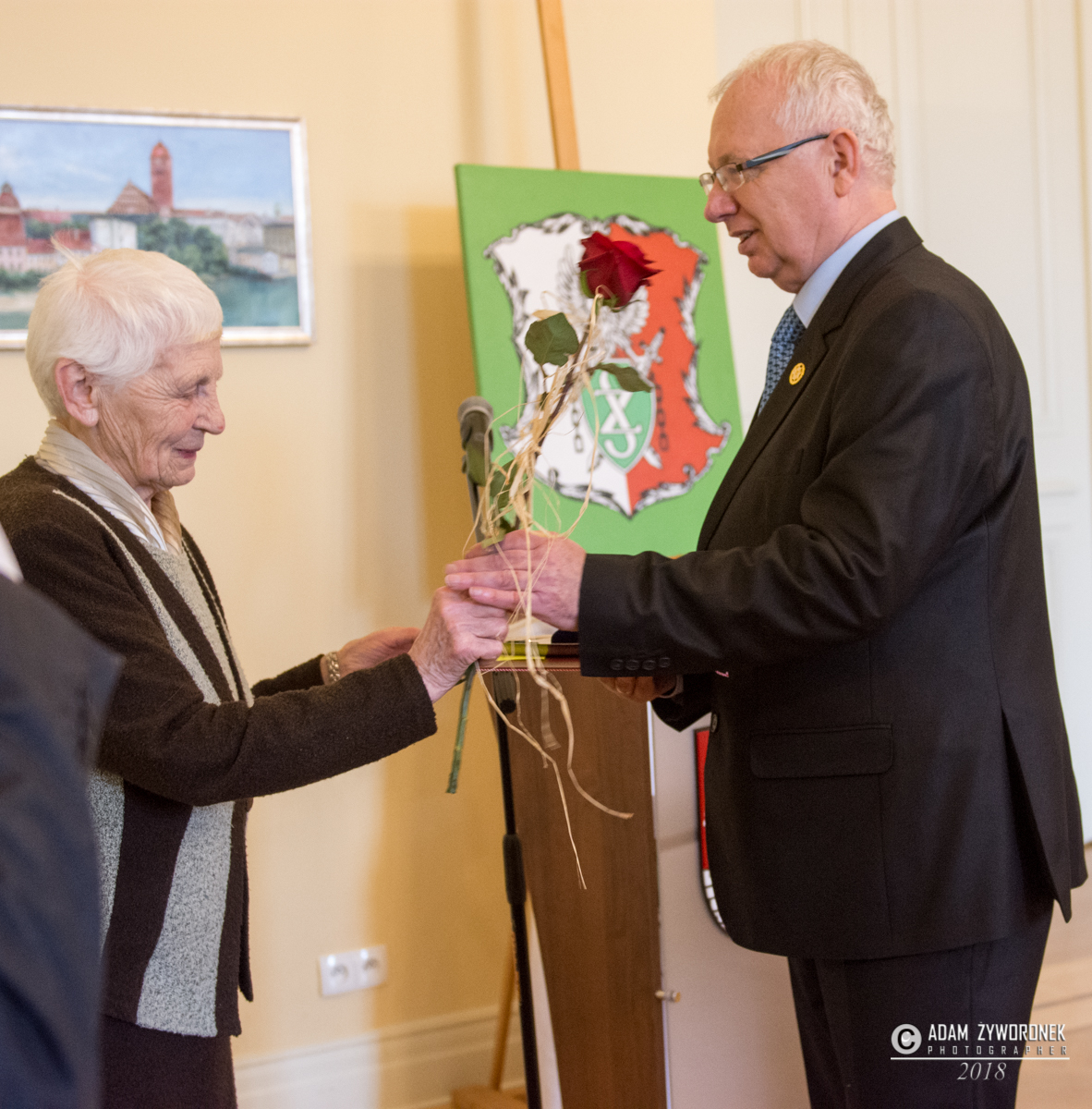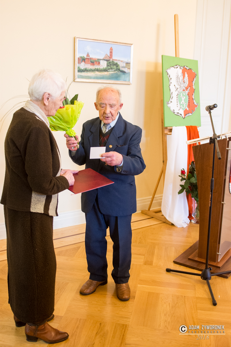 Były dyplomy i życzenia. Jednym z najważniejszych był medal, który pani Marii wręczył Piotr Gubernator, przewodniczący zarządu Związku Kombatantów RP i Byłych Więźniów Politycznych.