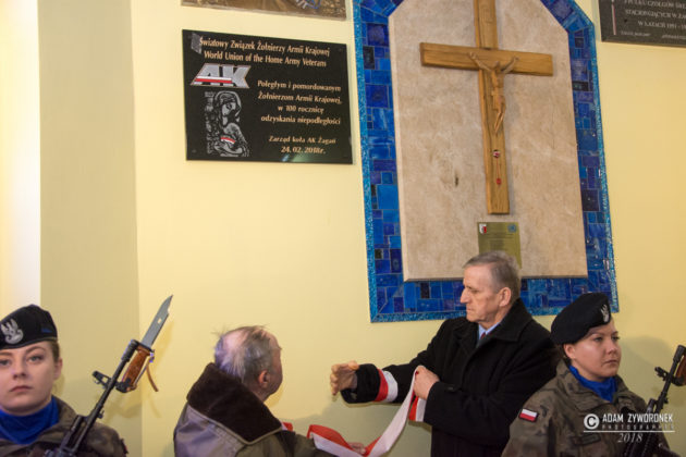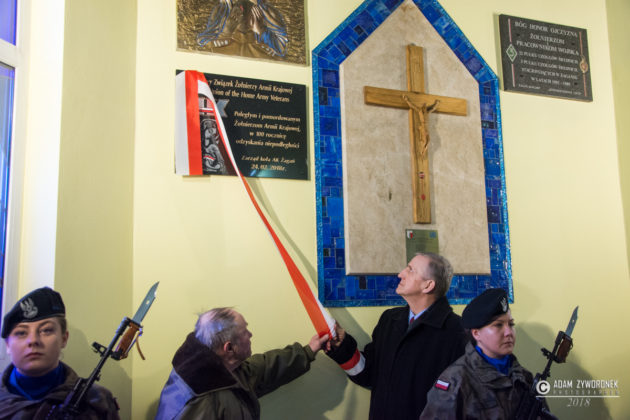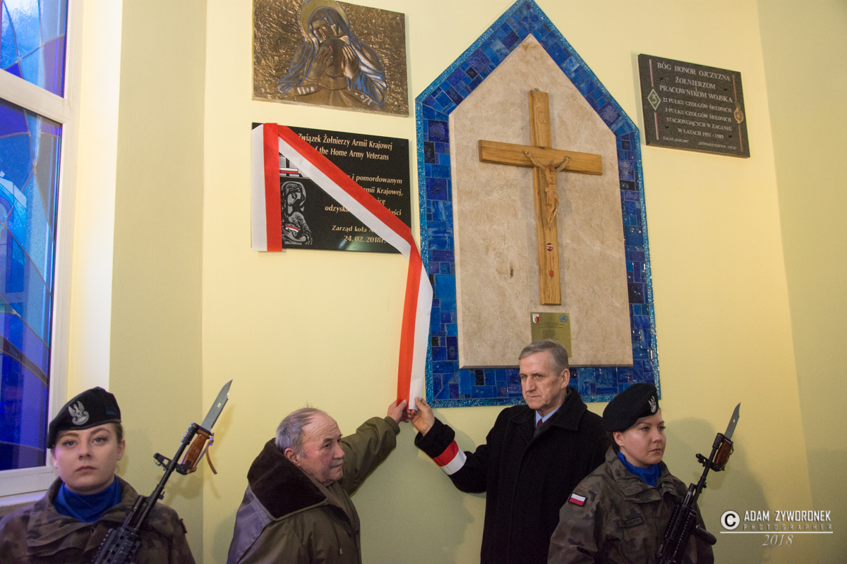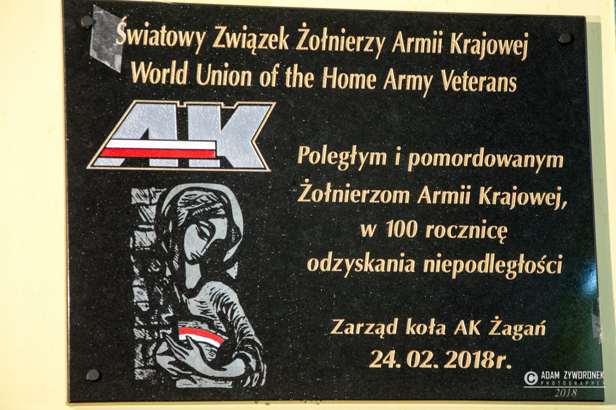 Tablicę odsłonili: Leszek Kornosz, prezes Światowego Związku Żołnierzy Armii Krajowej w Zielonej Górze wraz z Kazimierzem Pióro, honorowym prezesem żagańskiego koła.