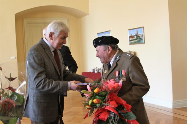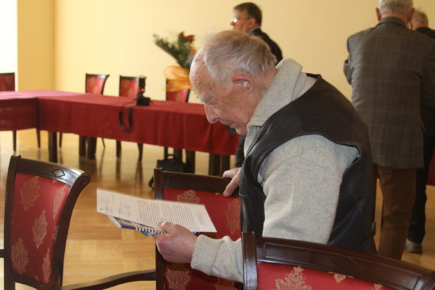 Kwiaty i list gratulacyjny w imieniu burmistrza Daniela Marchewki przekazał mu Leszek Maćkowiak podczas uroczystości w sali konferencyjnej Pałacu Książęcego. Pan Kazimierz przyjął wiele serdecznych życzeń od przyjaciół, z którymi stale współpracuje.