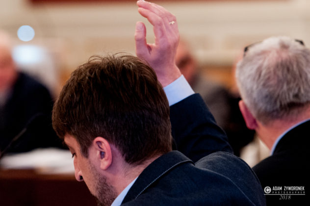 Podczas posiedzeń komisji, zwołanych w czasie przerwy w obradach większość komisji opowiedziała się za wsparciem dla powiatu i przesunięciem pieniędzy na ten cel z planowanej modernizacji nawierzchni ul. Prusa. Podczas ostatecznego głosowania 12 radnych było za. Przeciwni byli radni Sebastian Kulesza i Zbigniew Janek. Od głosu wstrzymał się Stanisław Kucab i Henryk Sienkiewicz. Radni Piotr Łoś i Dariusz Jadach nie głosowali, chociaż byli na sali obrad (sali Kryształowej Pałacu Książęcego) i na swoich miejscach. Ostatecznie autopoprawka przeszła większością głosów, jak również wynikające z niej zmiany w długoletniej prognozie finansowej. Dzięki temu powiatowa ulica Kolejowa doczeka się remontu chodników.