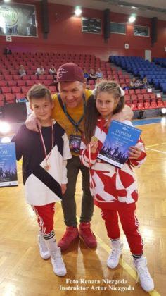 Nasi tancerze wywalczyli: debiuty breakdance i hip-hop- ocena 6 – Maja Żołyńska – 5 lat. Breakdance klasy: 1 miejsce Wiktor Dąbrowski Wiktor (breakdance solo chłopcy S 16.+), Julia Żołyńska (breakdance solo dziewczęta D 11.-), Szymon Stelmasik (breakdance solo chłopcy C 11.-). Breakdance open, pierwsze miejsca: W. Dąbrowski (breakdance solo chłopcy open 16.+), J. Żołyńska (solo dziewczęta Open 11.-), S. Stelmasik ( solo chłopcy open 11.-). Hip-hop klasy – pierwsze miejsca: Wiltoria Szwarc (solo A 14.-15) i J. Żołyńska (solo C 10.-11). Drugie miejsce S. Stelmasik (solo C 10.-11). Hip-hop open pierwsze miejsca: W. Dąbrowski (solo chłopcy open 16.+), W. Szwarc (solo dziewczęta open 12.-15), J. Żołyńska (solo dziewczęta open 11.-), S. Stelmasik Szymon (solo chłopcy Open 11.-). Hipo hop duet klasa B+C 11. I open 11. – pierwsze miejsce J. Żołyńska i S. Stelmasik.