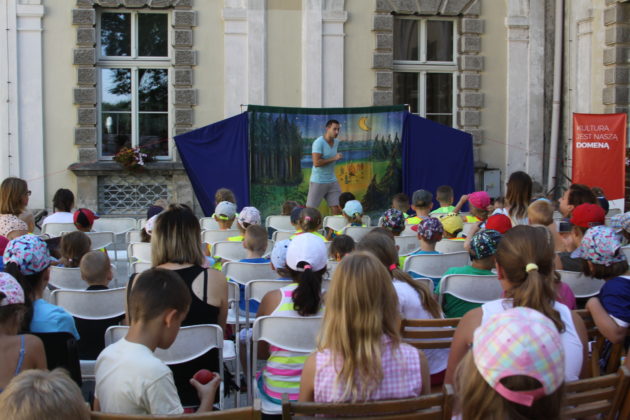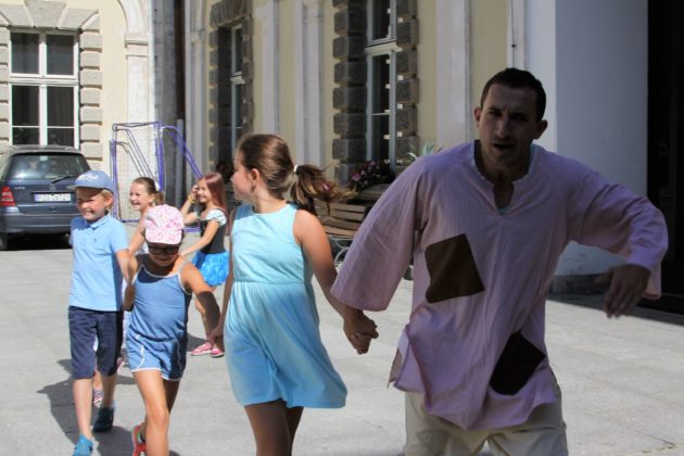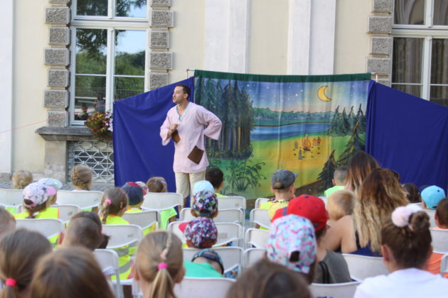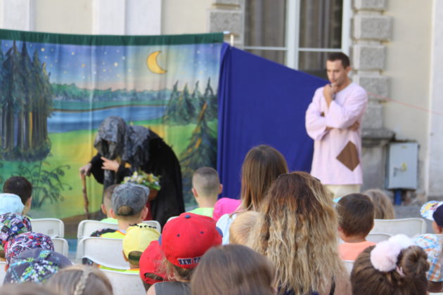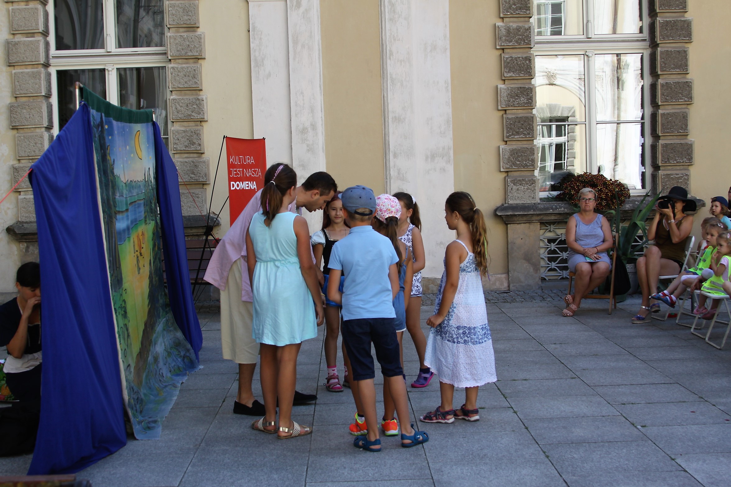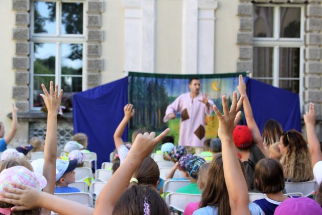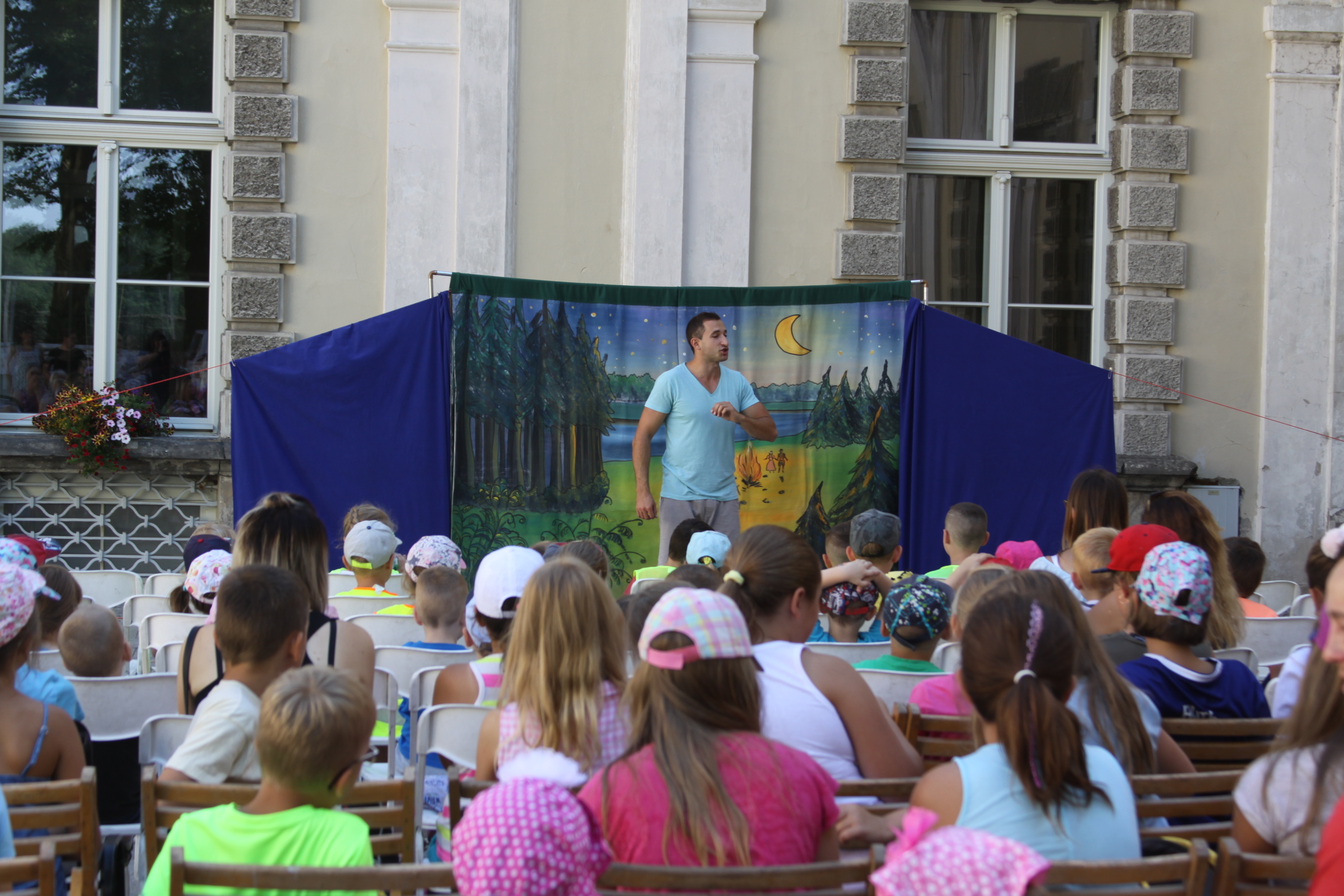 Na widowni na pałacowym dziedzińcu, w czwartek 26 lipca zasiadły dzieci z żagańskich i żarskich przedszkoli, a także te, które przyszły z rodzicami i dziadkami z miasta. Aktorzy zachęcali małych widzów do wzięcia udziału we wspólnej zabawie. Było dużo śmiechu i zabawy.