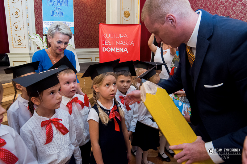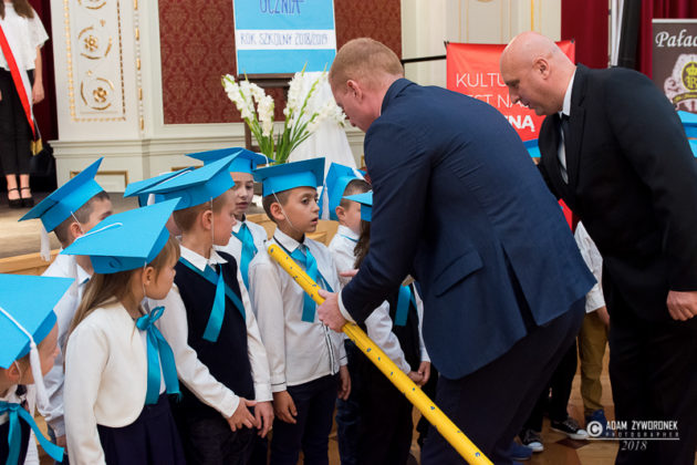 – Do tej pory pamiętam swoje pasowanie na ucznia, w skromnej i zaniedbanej wówczas sali gimnastycznej jedynki – wspominał burmistrz Daniel Marchewka. – Dzisiejszą uroczystość też zapamiętacie na całe życie. Dbam o żagańskie szkoły i wiem, jak są ważne. Zrobimy wszystko, żeby były bezpieczne, żeby uczniom niczego nie brakowało i żeby żadne dziecko nie było w szkole głodne.