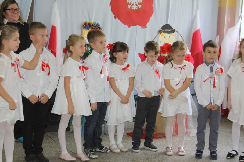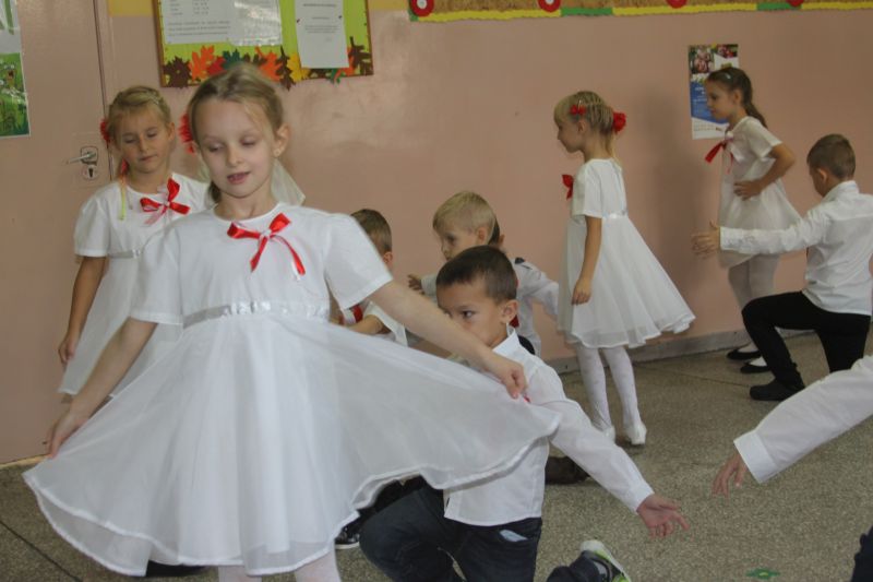 Nie zabrakło tradycyjnych tańców: poloneza i kujawiaka, patriotycznych pieśni i wierszy, które dzieci deklamowały z wielkim przejęciem. Zaśpiewały również wszystkie zwrotki Mazurka Dąbrowskiego, a także hymnu Unii Europejskiej.