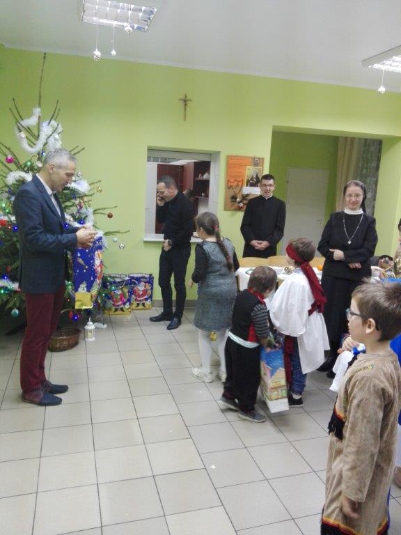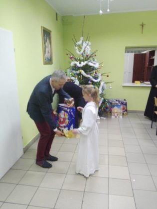 19 grudnia w świetlicy dla dzieci przy Parafii Wniebowzięcia NMP w Żaganiu odbyło się świąteczne spotkanie wigilijne, przygotowane przez dzieci, siostrę Ewę ze Zgromadzenia Sióstr Adoratorek Krwi Chrystusa oraz wolontariuszy. W uroczystości wziął udział Zastępca Burmistrza Sebastian Kulesza i przedstawiciele Urzędu Miasta. Dzieci wprowadziły gości we wspaniały nastrój Świąt Bożego Narodzenia przedstawieniem jasełkowym oraz wspólnym kolędowaniem, które sprawiło wszystkim uczestnikom spotkania mnóstwo radości. Był czas na życzenia, podzielenie się opłatkiem oraz serdeczne uściski. Sebastian Kulesza życzył najmłodszym zdrowych, spokojnych, radosnych świąt i wspaniałego nadchodzącego Nowego Roku 2019 oraz wręczył paczki świąteczne, pełne słodyczy i zabawek. Na zakończenie przyszedł czas na słodki poczęstunek przy wigilijnym stole w prawdziwie rodzinnej atmosferze.