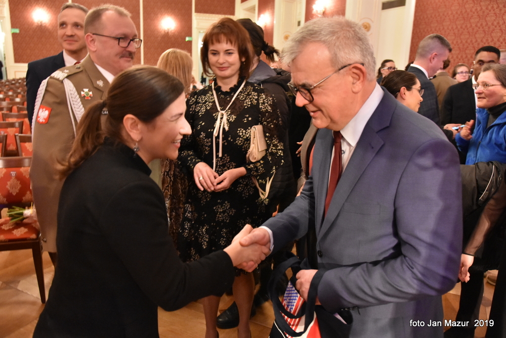 Przed rozpoczęciem koncertu, wyjątkowych gości – konsul ds. prasy i kultury  Amy Steinmann i zastępcę dowódcy Czarnej Dywizji gen. bryg. Dariusza Parylaka powitali wspólnie burmistrz Andrzej Katarzyniec i jego zastępca Sebastian Kulesza. Pani konsul w swoim wystąpieniu podkreśliła między innymi, że: Po tych 20 latach, Polska i Ameryka są bliżej siebie niż kiedykolwiek dotychczas.
