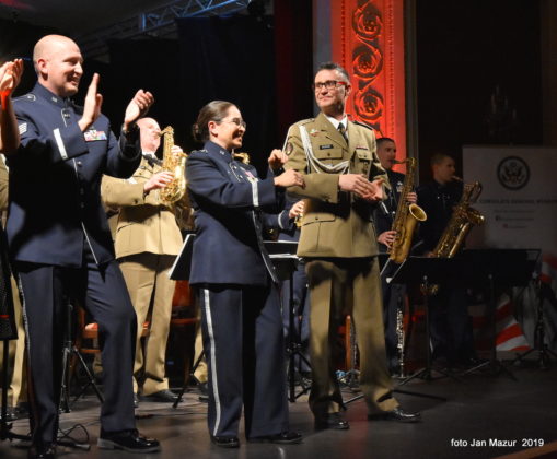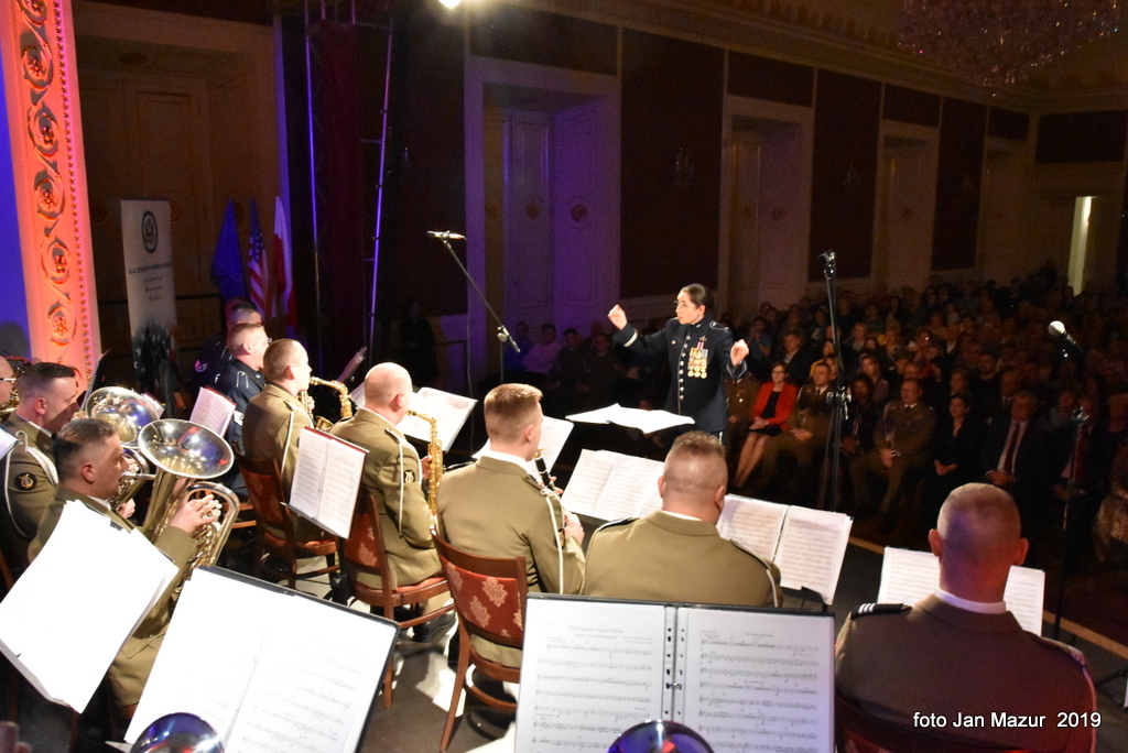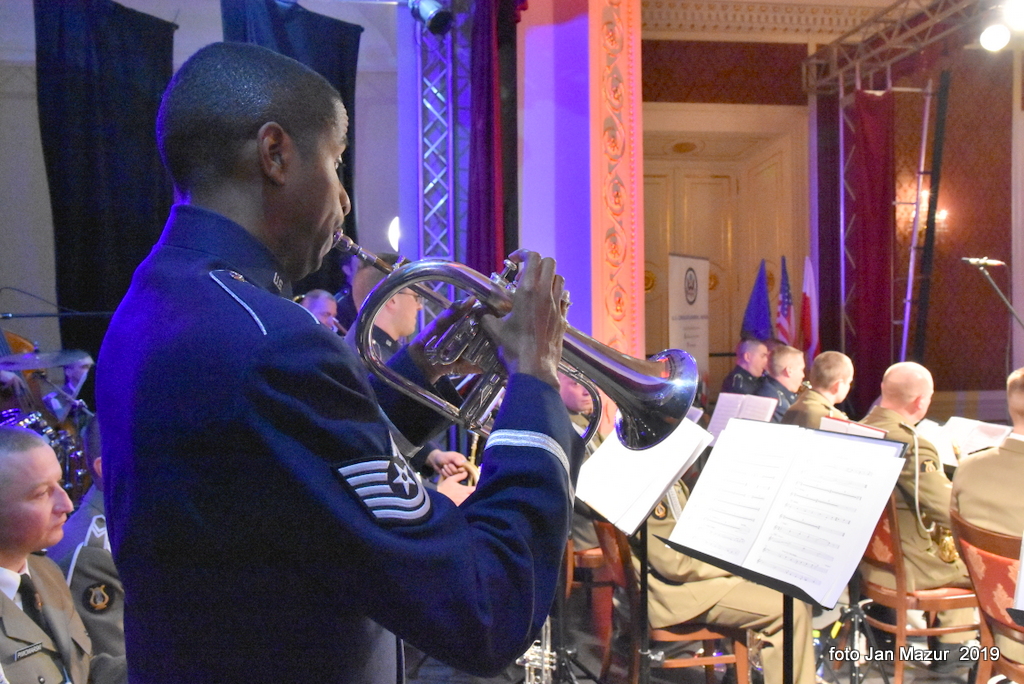 Jubileusz stał się okazją do polsko-amerykańskiej wymiany kulturalnej. Dlatego Orkiestra Wojskowa z Żagania zharmonizowała tego wieczoru swoje instrumenty z grającą na co dzień z Orkiestrą Amerykańskich Sił Powietrznych grupą swingowo-jazzową The Ambassadors.