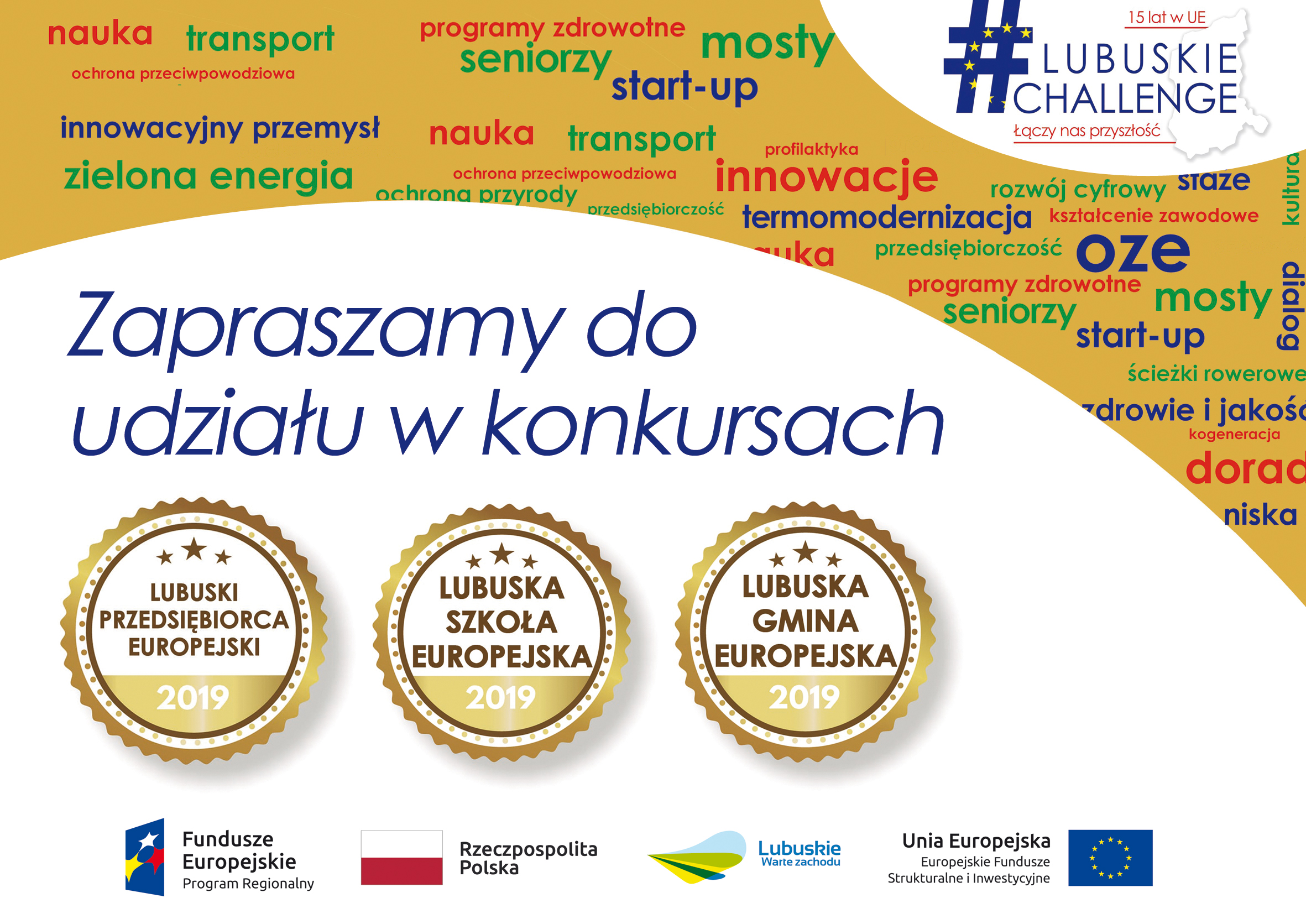 “Lubuska Gmina Europejska” – celem konkursu jest promowanie najbardziej europejskich lubuskich gmin, które wyróżniły się aktywnością w pozyskiwaniu środków z Unii Europejskiej. Przedmiotem konkursu jest informacja na temat wysokości uzyskanego dofinansowania na projekty unijne w latach 2004-2019, w przeliczeniu na 1 mieszkańca gminy. Uczestnicy konkursu mogą wziąć w nim udział tylko w ramach jednej kategorii: gmin wiejskich, gmin miejsko-wiejskich, gmin miejskich kierowanych przez burmistrza, gmin miejskich kierowanych przez prezydenta. (Nagrody: Certyfikaty „Lubuska Gmina Europejska”, Witacze – tablice umieszczane przy wjeździe do miejscowości/gminy) informujące o przyznanym tytule, Statuetki).