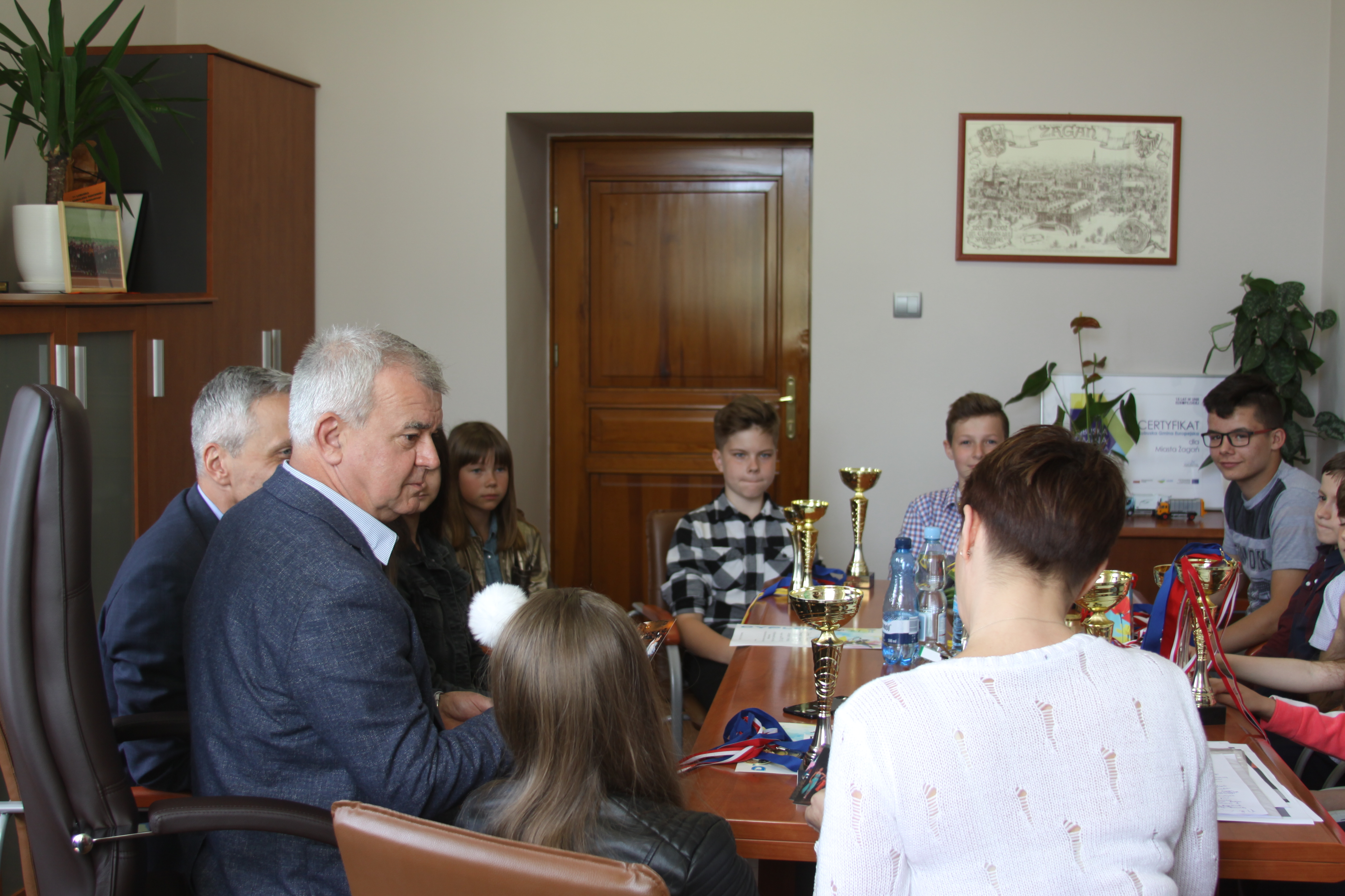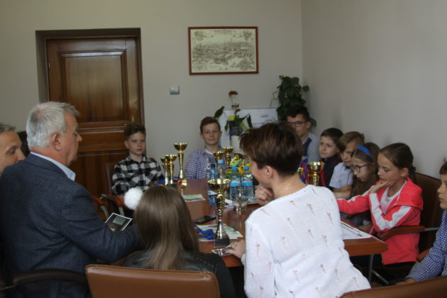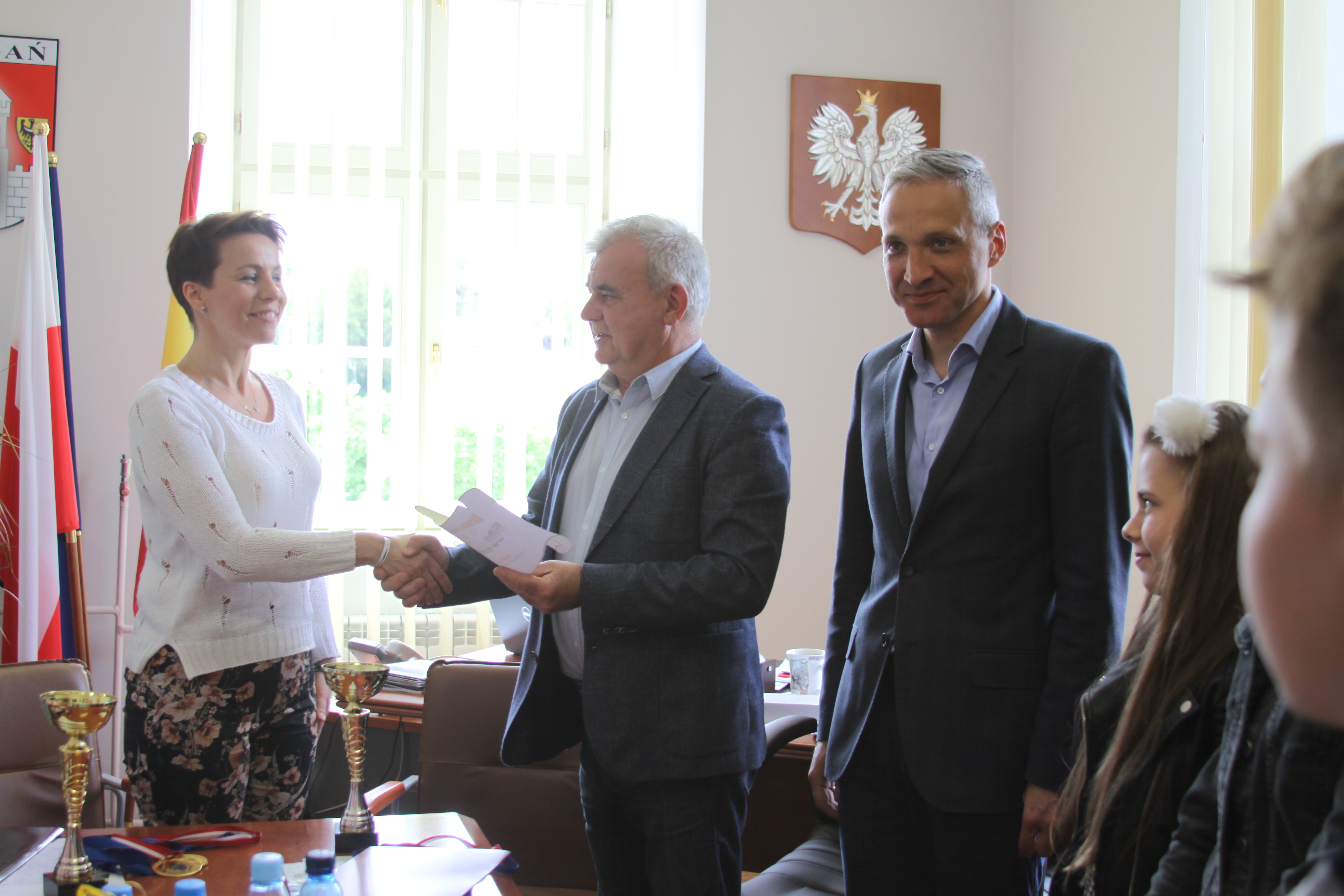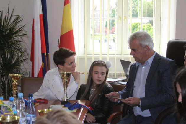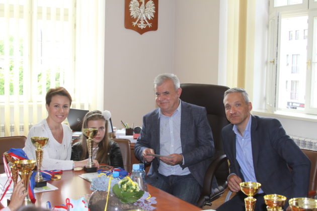 Burmistrz Andrzej Katarzyniec podziękował dzieciom za pracę oraz pogratulował zdobytych tytułów. Na ręce pani Sylwii Materek przekazał symboliczny czek, który pomoże rozwijać młodzieży swoje pasje i aktywnie uczestniczyć w przyszłych turniejach tanecznych.