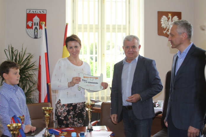 21 maja gośćmi burmistrza Andrzeja Katarzyńca byli młodzi tancerze ze szkoły tańca “Alex”, prowadzonej przez panią Sylwię Materek. Dzieci opowiedziały o swoich największych tanecznych sukcesach, do których należało między innymi zdobycie tytułów mistrzowskich w trakcie ostatnich turniejowych zmagań w Siedlisku. Instruktorka przypomniała natomiast piękne i widowiskowe turnieje tańca towarzyskiego, które przed laty odbywały się w Sali Kryształowej żagańskiego pałacu. Prezentując zdjęcia z tamtego okresu, przekonywała gospodarzy spotkania do powrotu do tamtych idei. Zakończony remont sali daje ponownie możliwość organizacji wysokiej rangi turniejów tańca towarzyskiego w Żaganiu.