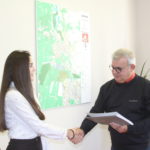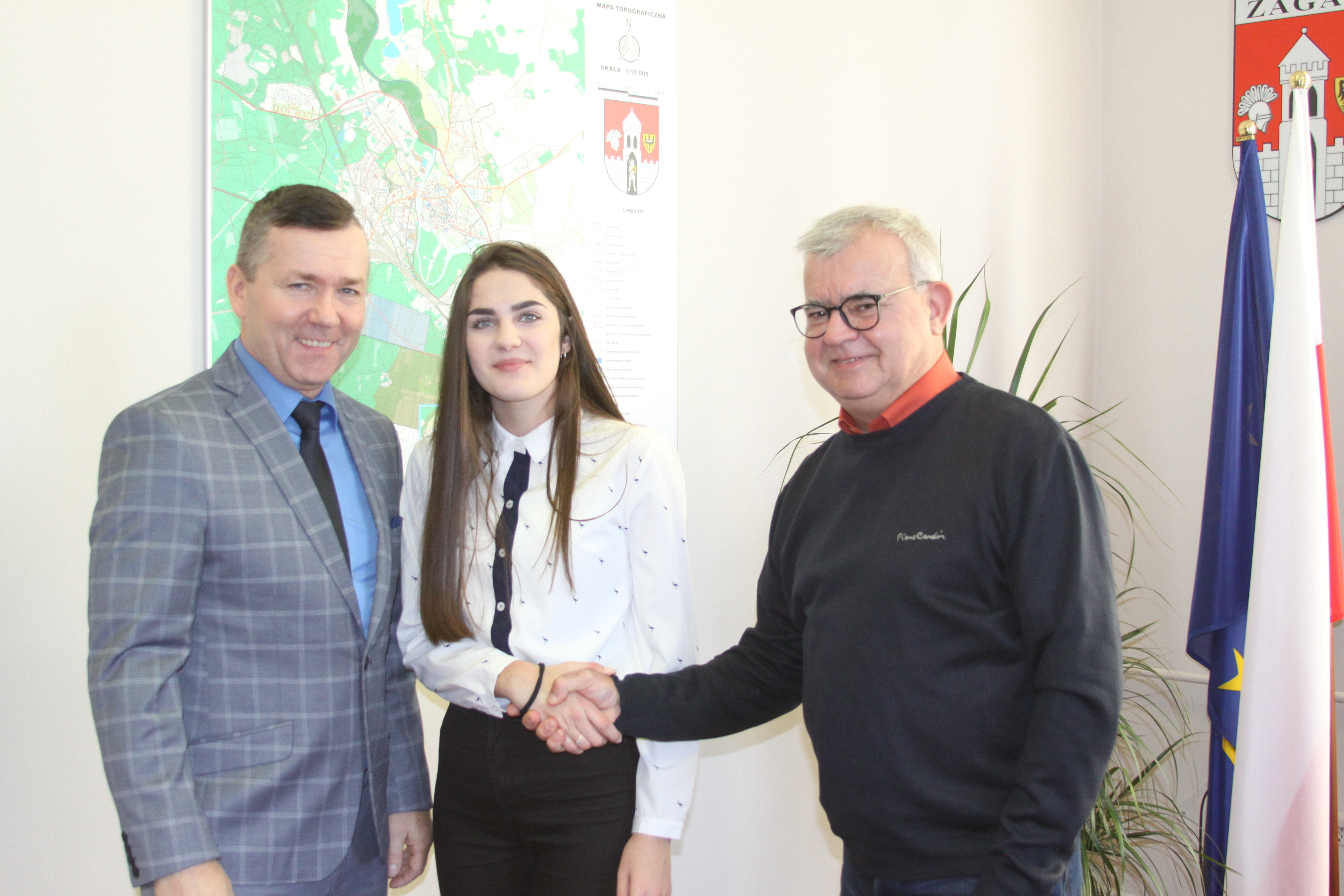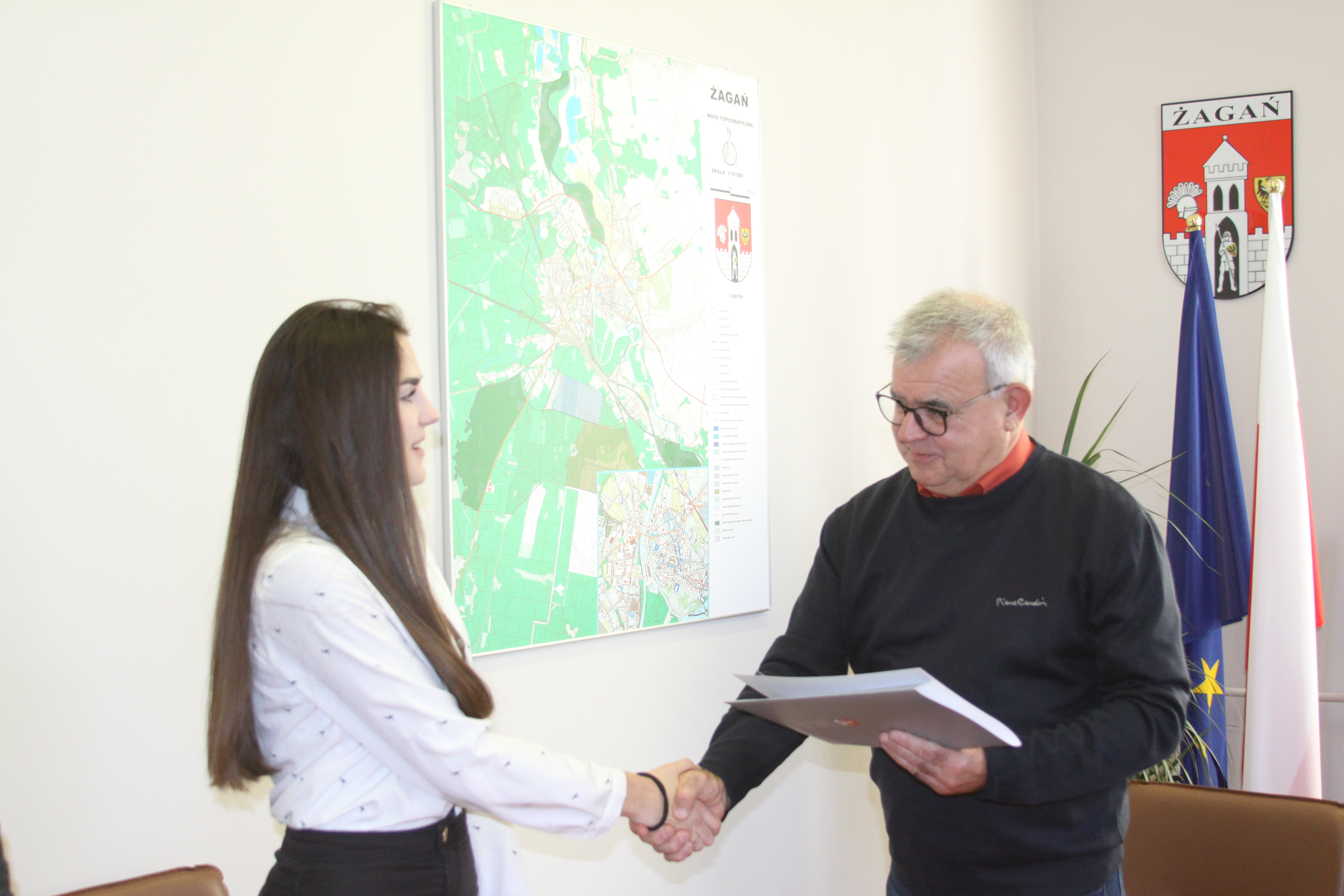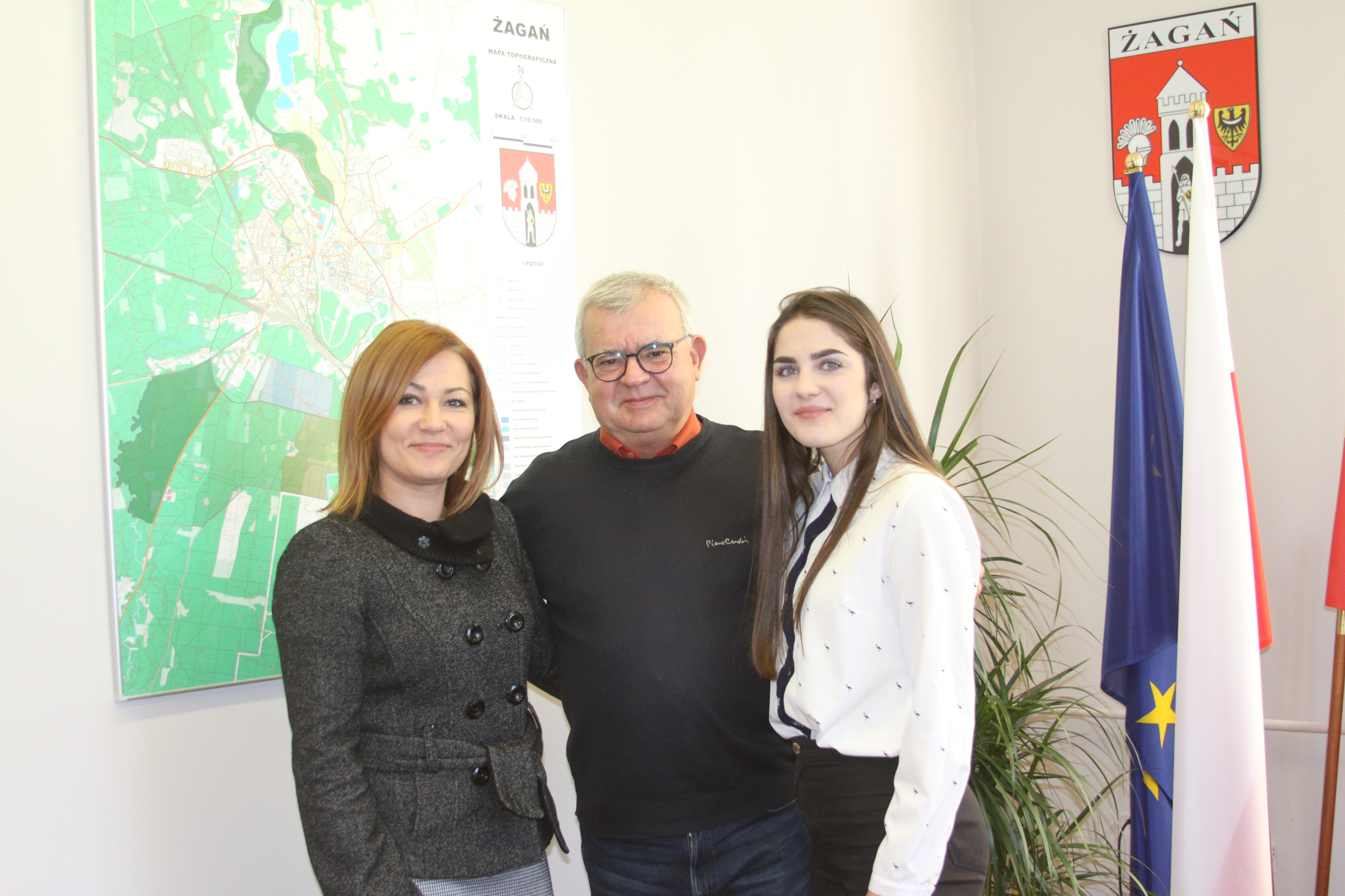 Na zaproszenie burmistrza Andrzeja Katarzyńca Urząd Miasta odwiedziła dzisiaj Mistrzyni Świata Katarzyna Wojtal wraz z mamą Panią Anetą Wojtal oraz trenerem Panem Arturem Niezgodą. Aby wesprzeć młodą zawodniczkę WKS “Sobieski” Żagań i podziękować za godne reprezentowanie naszego miasta na Mistrzostwach Świata, burmistrz przekazał jej symboliczny czek na zakup sprzętu sportowego.