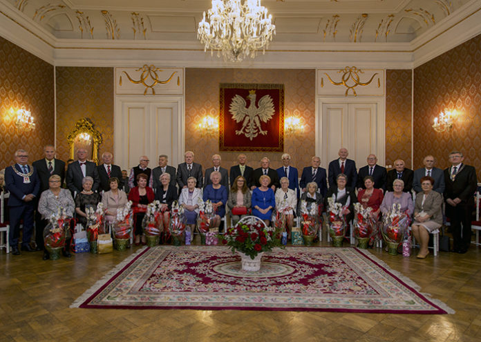 W sobotę 19 października odbyło się uroczyste wręczenie Medali za Długoletnie Pożycie Małżeńskie dla osób, które przeżyły w związku małżeńskim 50 lat. Medale nadawane są przez Prezydenta Rzeczypospolitej Polskiej, wręczone w trakcie uroczystości przez Burmistrza Miasta Żagań Andrzeja Katarzyńca. Zwracając się do zacnego grona jubilatów gospodarz miasta podkreślił, iż pół wieku trwania w małżeństwie jest z pewnością powodem do radości i dumy, bo taki staż osiągają nieliczni. Burmistrz prosił najmłodsze pokolenia obecne na sali o opiekę nad seniorami rodów. Gospodarz miasta zadeklarował, że jeżeli dotrą do niego wiadomości, iż opieka taka nie jest należycie sprawowana, osobiście zadba o jubilatów.