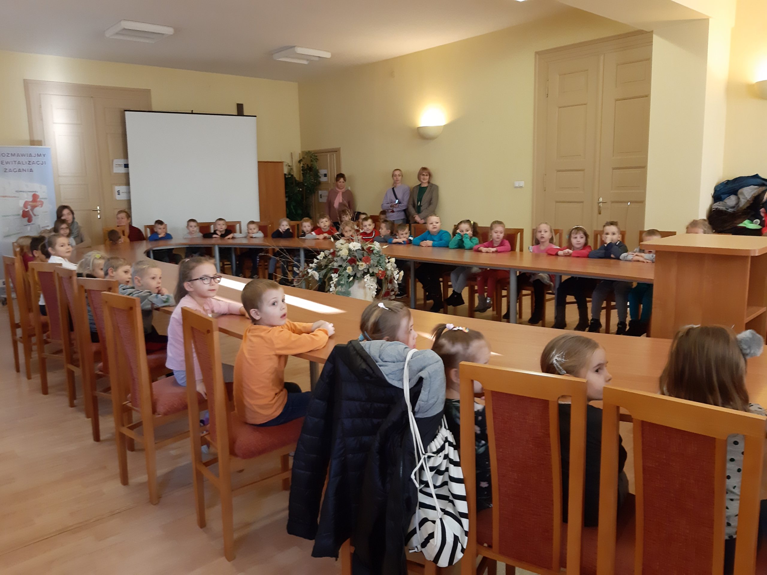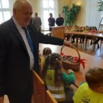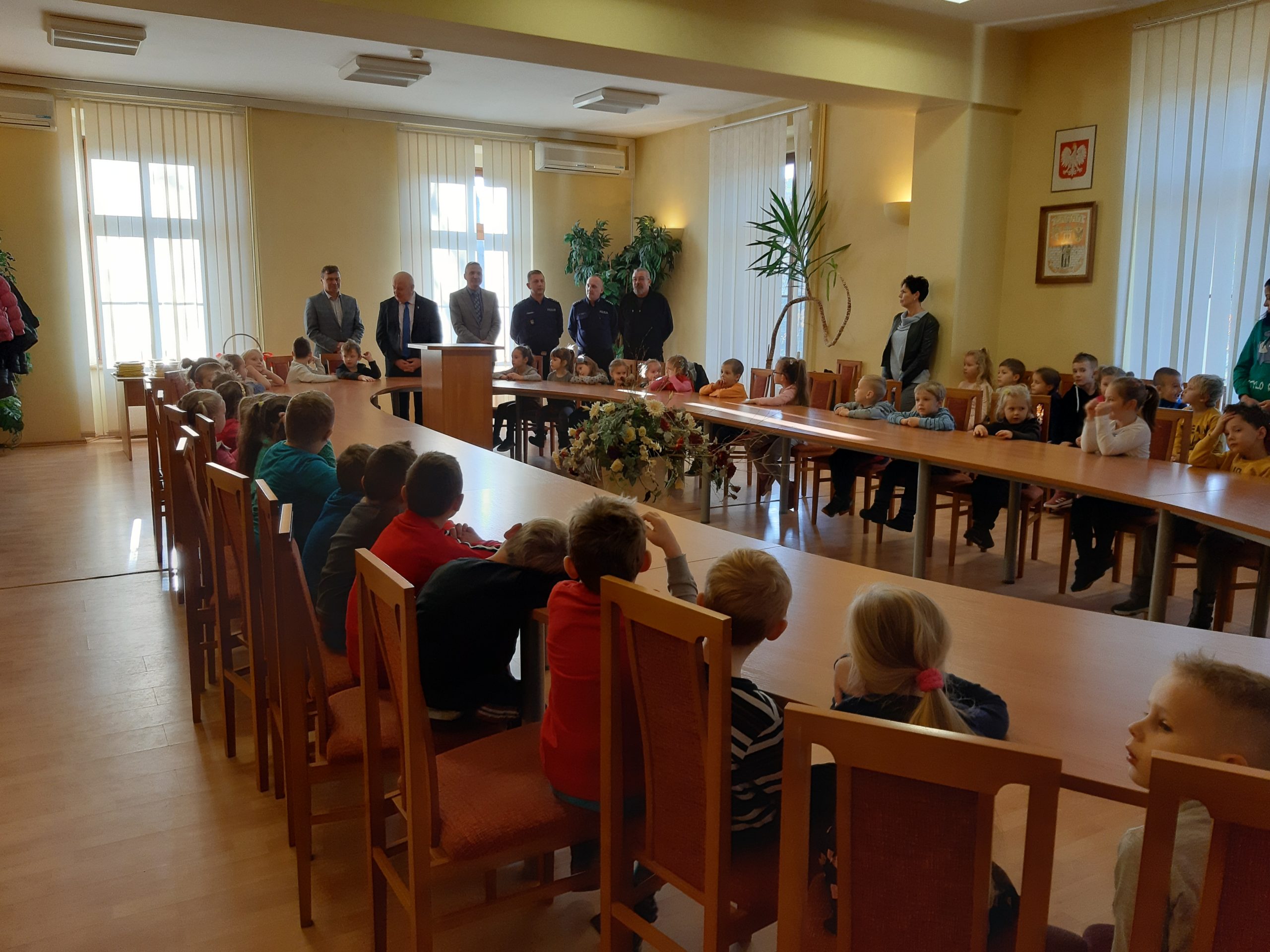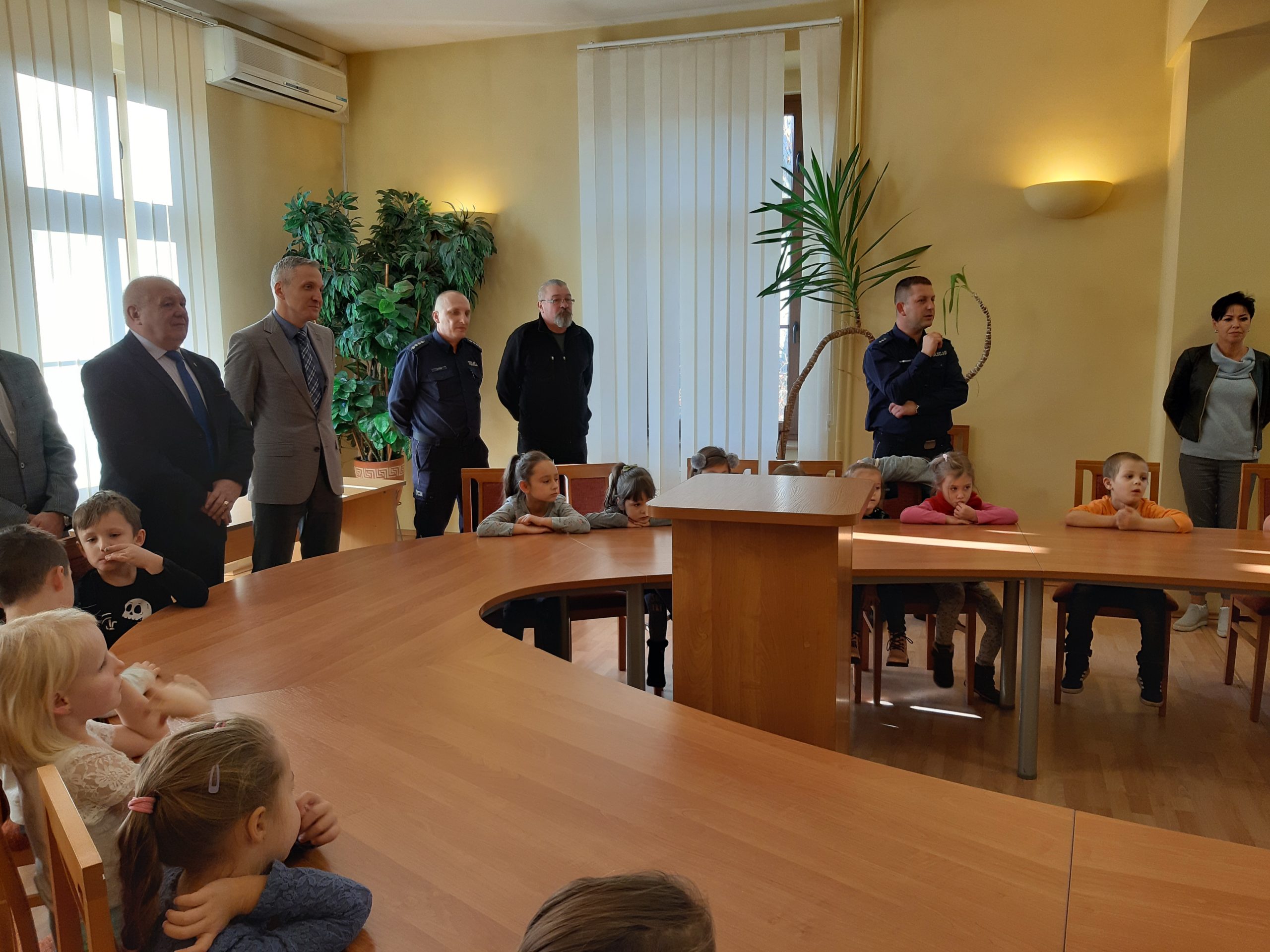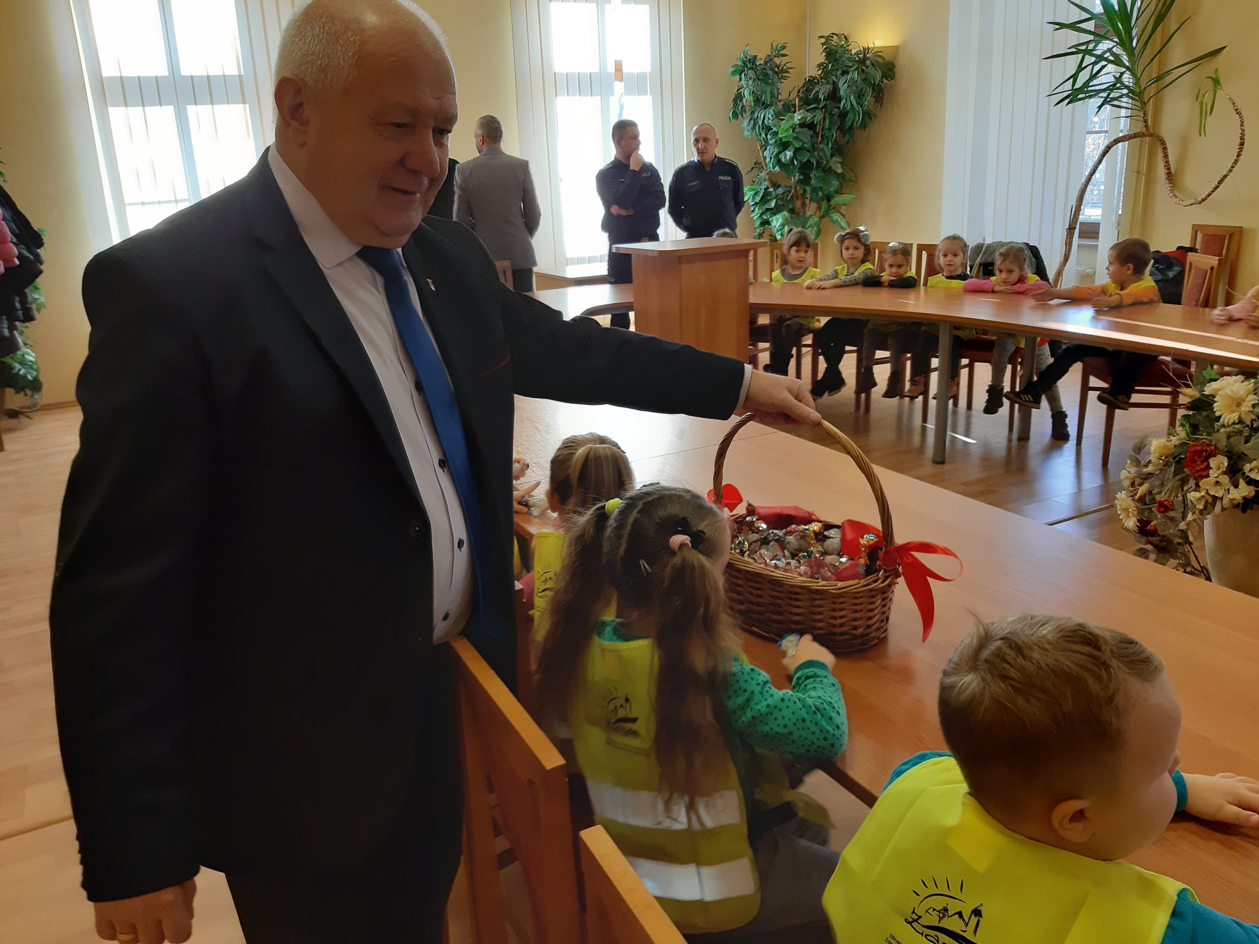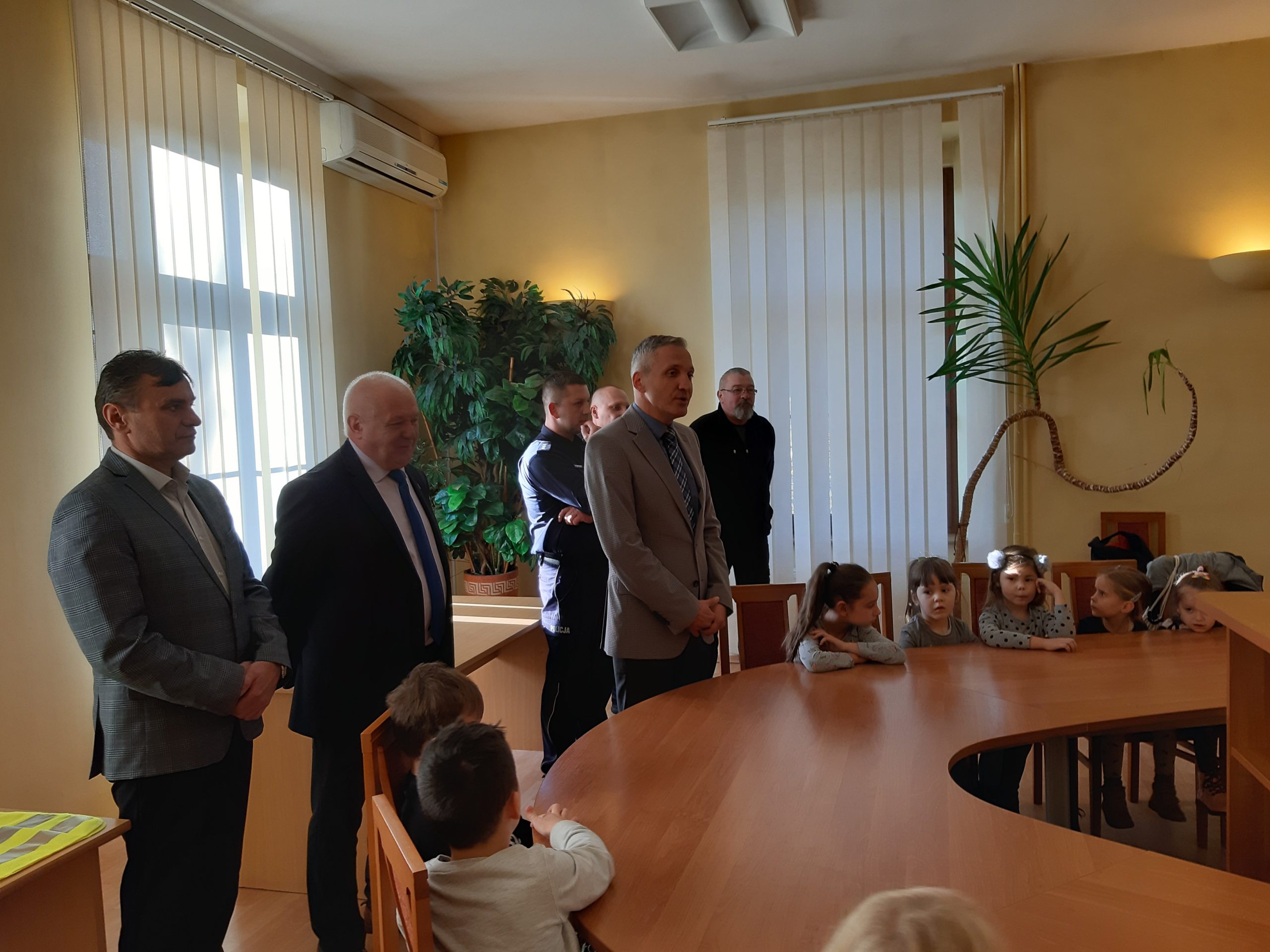W czasie pogadanki z dziećmi, zastępca Komendanta Powiatowego Policji komisarz Mateusz Domaradzki przypomniał dzieciom, jak bezpiecznie korzystać z drogi i jak się zachowywać na drodze będąc uczestnikiem ruchu jako pieszy. W trakcie spotkania wręczono wszystkim uczestnikom kamizelki odblaskowe, które będą wykorzystywane przez dzieci podczas wyjść poza teren przedszkola zwiększając ich bezpieczeństwo.