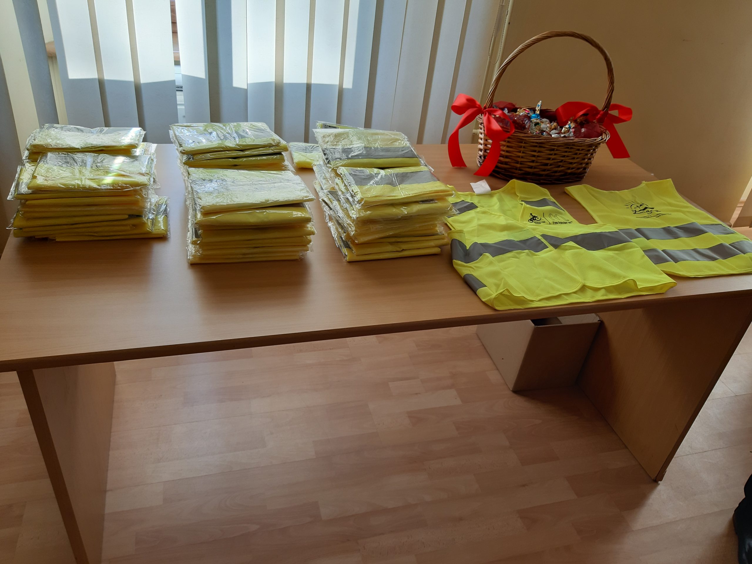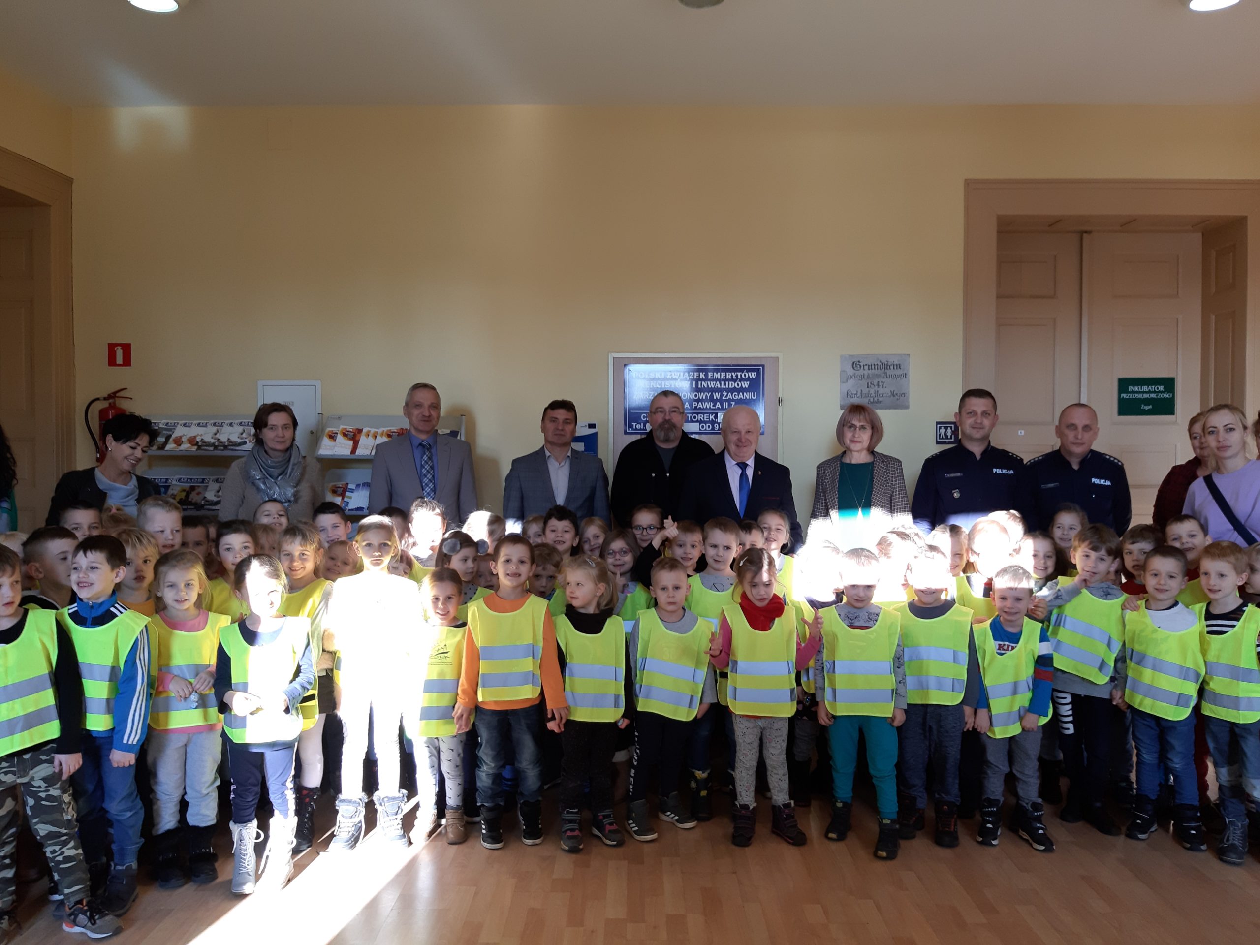 W trakcie spotkania wręczono wszystkim uczestnikom kamizelki odblaskowe, które będą wykorzystywane przez dzieci podczas wyjść poz teren przedszkola zwiększając ich bezpieczeństwo.