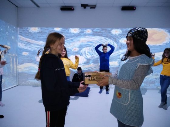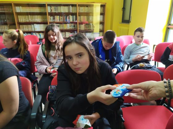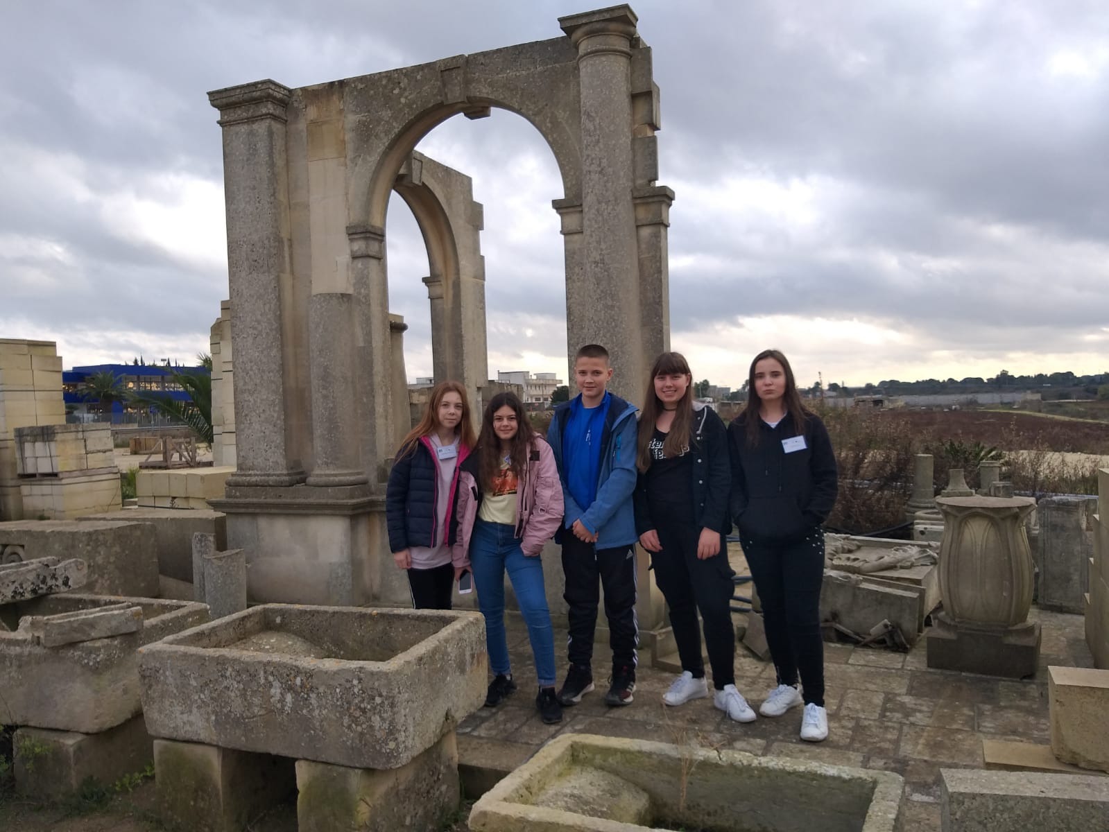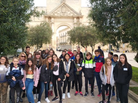 Ponieważ tematyka projektu jest związana z dziedzictwem kulturowym państw uczestniczących w projekcie: Polski, Hiszpanii, Włoch i Bułgarii, uczestnicy projektu, podczas siedmiodniowego pobytu we Włoszech, poznawali dziedzictwo kulturowe tego kraju. Już pierwszego dnia partnerzy projektu zostali przywitani przez szkolną orkiestrę przy dźwiękach hymnu Unii Europejskiej. Uczniowie wzięli udział w warsztatach tanecznych, zwiedzili partnerską szkołę i wzięli udział w lekcjach. W kolejnym dniu partnerzy projektu poznawali dziedzictwo kulturowe Włoch pod hasłem: “Od kamienia do sztuki”. Odwiedzili kamieniołomy, gdzie wydobywany jest wapień, po czym zwiedzili fabrykę PIMAR, obserwując proces powstawania wyborów z wapienia m.in. płytek, lamp, sztukaterii. Kolejnym punktem programu było zwiedzanie miasta Lecce, nazywanego ” barokową perłą południa “, muzeum morskiego, gdzie dzieci i nauczyciele zapoznali się z fauną i florą basenu Morza Śródziemnego. W kolejnych dniach uczestnicy projektu odwiedzili szkołę Montessori, zapoznając się z innowacyjnymi metodami nauczania. Dziewczęta wzięły udział w warsztatach teatralnych, a chłopcy rozegrali wirtualny mecz piłki nożnej. Jednym z ostatnich punktów programu wizyty było zwiedzanie nadmorskiej miejscowości Castro na styku dwóch mórz: Jońskiego i Adriatyku. Ostatniego dnia pobytu wszyscy zostali zaproszeni na pożegnalną kolację, podczas której otrzymali certyfikaty uczestnictwa w mobilności.