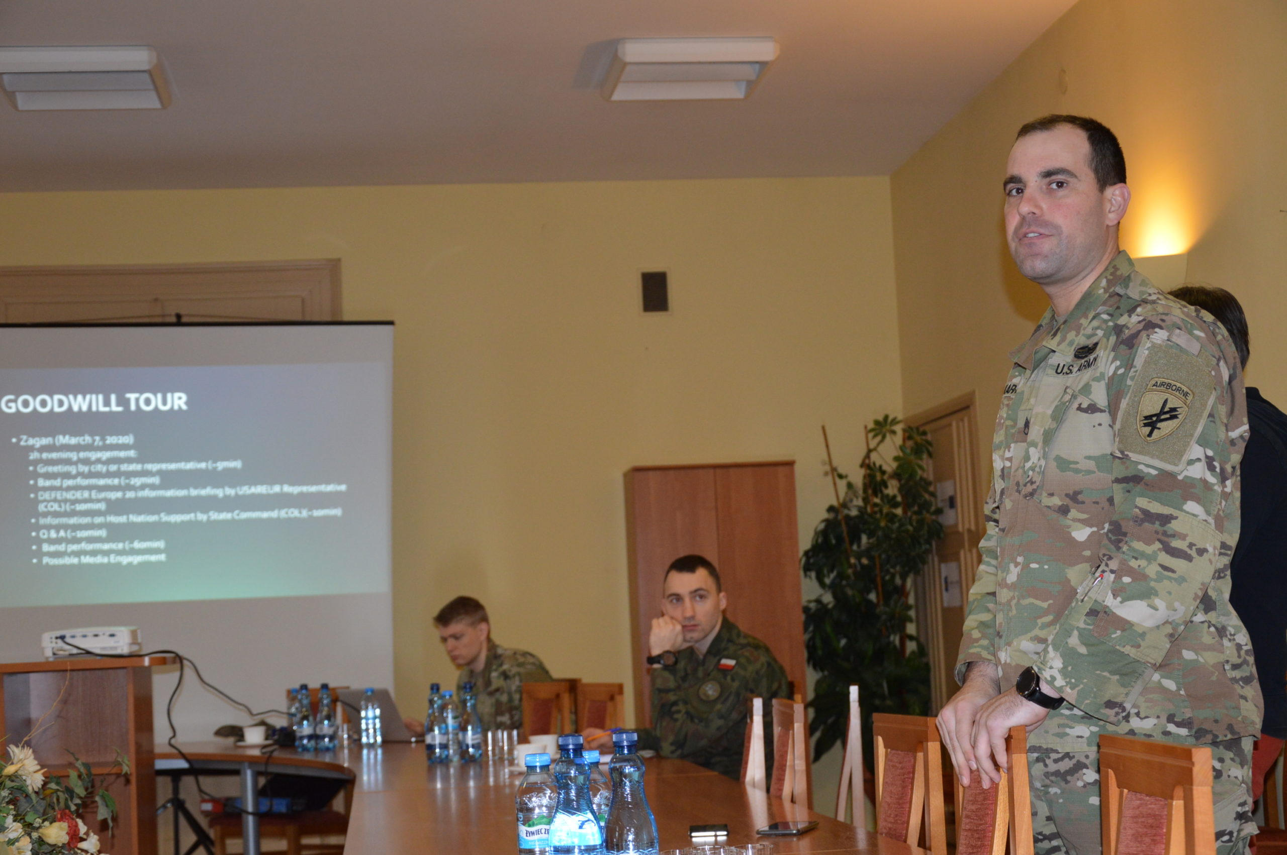 Gospodarzami spotkania byli przedstawiciele Civil Affairs Team (zespołu ds. współpracy z ludnością cywilną), którzy samorządowcom z Żagania, Iłowej, Gozdnicy, Brzeźnicy, Wymiarek, Szprotawy oraz Małomic przedstawili informacje na temat przemieszczania się wojsk przed i po planowanych ćwiczeniach. Zaproponowano również organizację koncertu amerykańskiej orkiestry wojskowej, biletowanego. Występ poprzedzi prezentacja koncepcji “Defendera”.