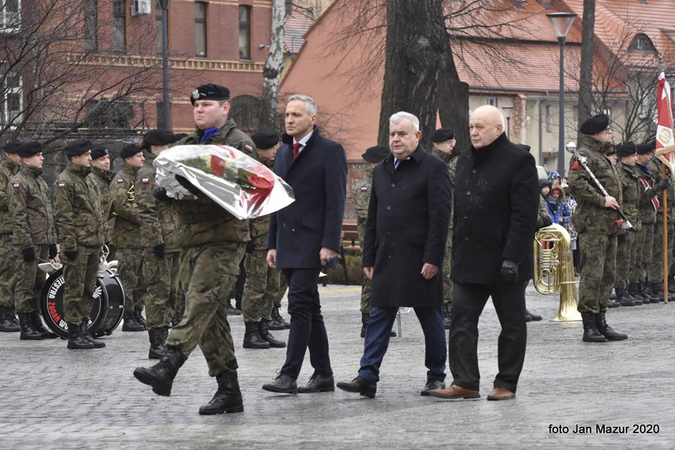 Żadne słowa nie opiszą rozmiaru krzywd i cierpienia, które przyniosły lata wojny. Jednak to nie słów oczekują od nas ofiary wojny, czy polegli na frontach żołnierze. Oni nie potrzebują kwiecistych przemów, czy wzniosłych deklaracji. Oni chcą tylko, żebyśmy pamiętali – mówił gospodarz miasta. – To tak niewiele, ale jednocześnie bardzo dużo. I właśnie dlatego spotykamy się tu, na Placu Generała Maczka. Spotkaliśmy się, żeby pamiętać, że to „ludzie ludziom zgotowali ten los”! Niech to wymowne zdanie przypomina nam, by jednoczyć się, a nie dzielić, by wspólnie tworzyć i rozwijać, a nie niszczyć!