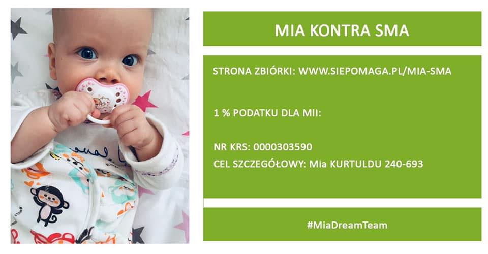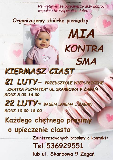 W odpowiedzi na informacje o chorobie małej Mii oraz drogim leku ratującym życie dziecka, wiele żagańskich jednostek i instytucji postanowiło wesprzeć zbiórkę pieniędzy. 6-miesięczna dziewczynka zmaga się z chorobą SMA typu pierwszego i żeby żyć, potrzebuje najdroższego leku świata. Zbiórkę prowadzi Fundacja Siępomaga.  Już ponad 8 tysięcy osób wsparło walkę o zdrowie dziewczynki, jednak to ciągle za mało, aby zakupić potrzebny lek. Zachęcamy do udziału w akcjach przygotowanych przez naszą społeczność i pomoc Mii.