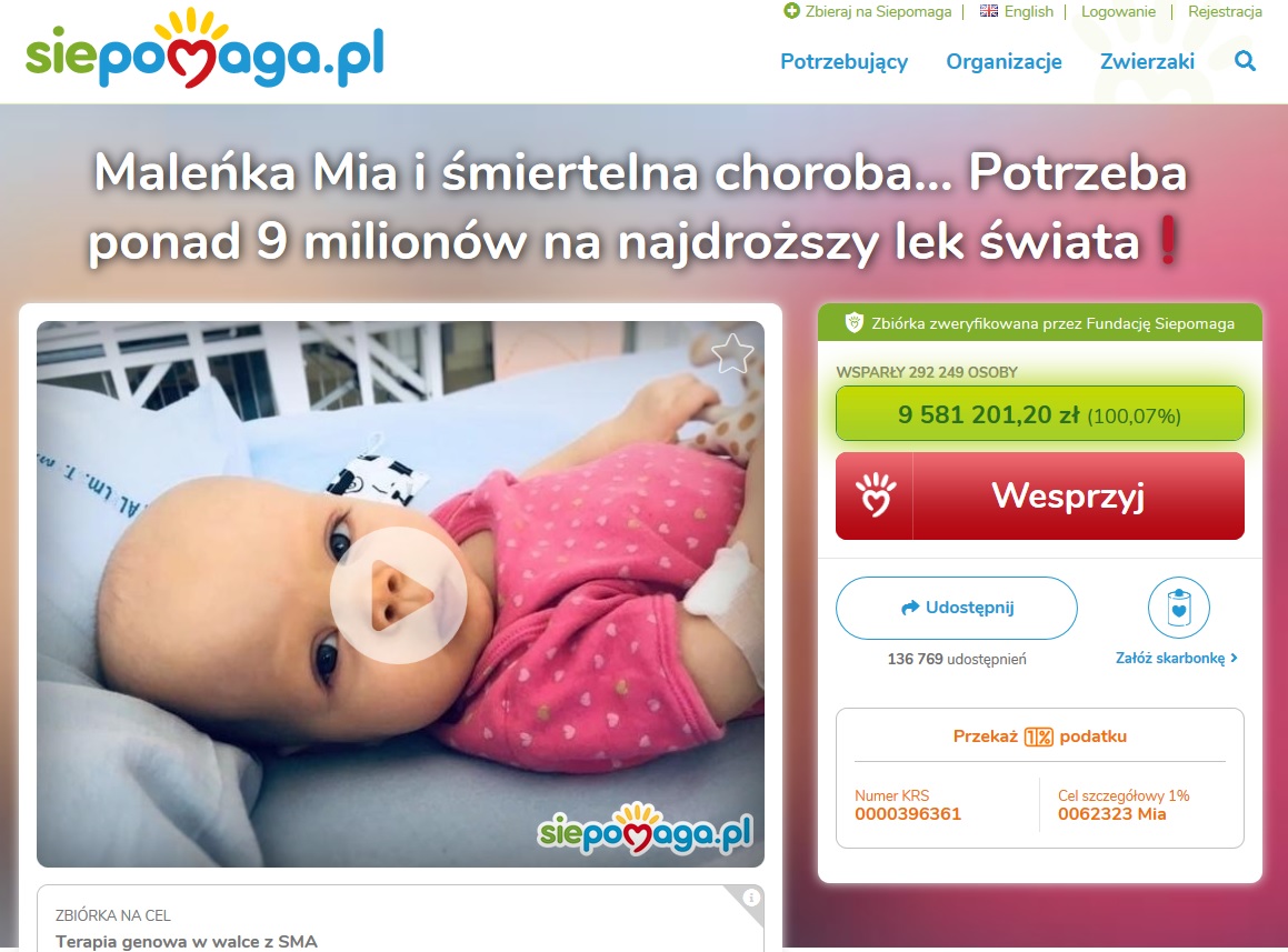 Dotarła do nas niezwykle radosna wiadomość! Zbiórka charytatywna dla Mii Kurtuldu została zakończona sukcesem, udało się uzbierać całą kwotę wymaganą do podjęcia leczenia SMA typu pierwszego u tej małej, ale jakże dzielnej dziewczynki.