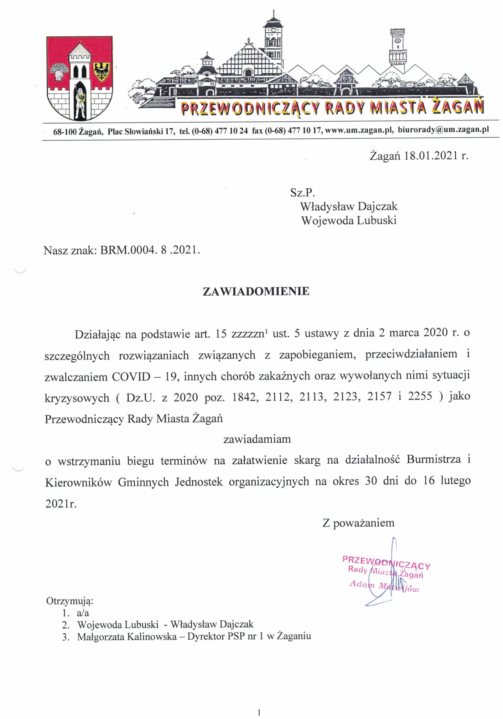Zawiadomienie Przewodniczącego Rady Miasta Żagań