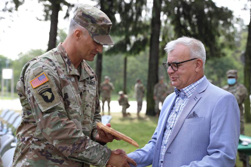 W środę 14 lipca br. Burmistrz Andrzej Katarzyniec wziął udział w ceremonii zmiany warty batalionu transportowego armii amerykańskiej w ramach operacji Atlantic Resolve.