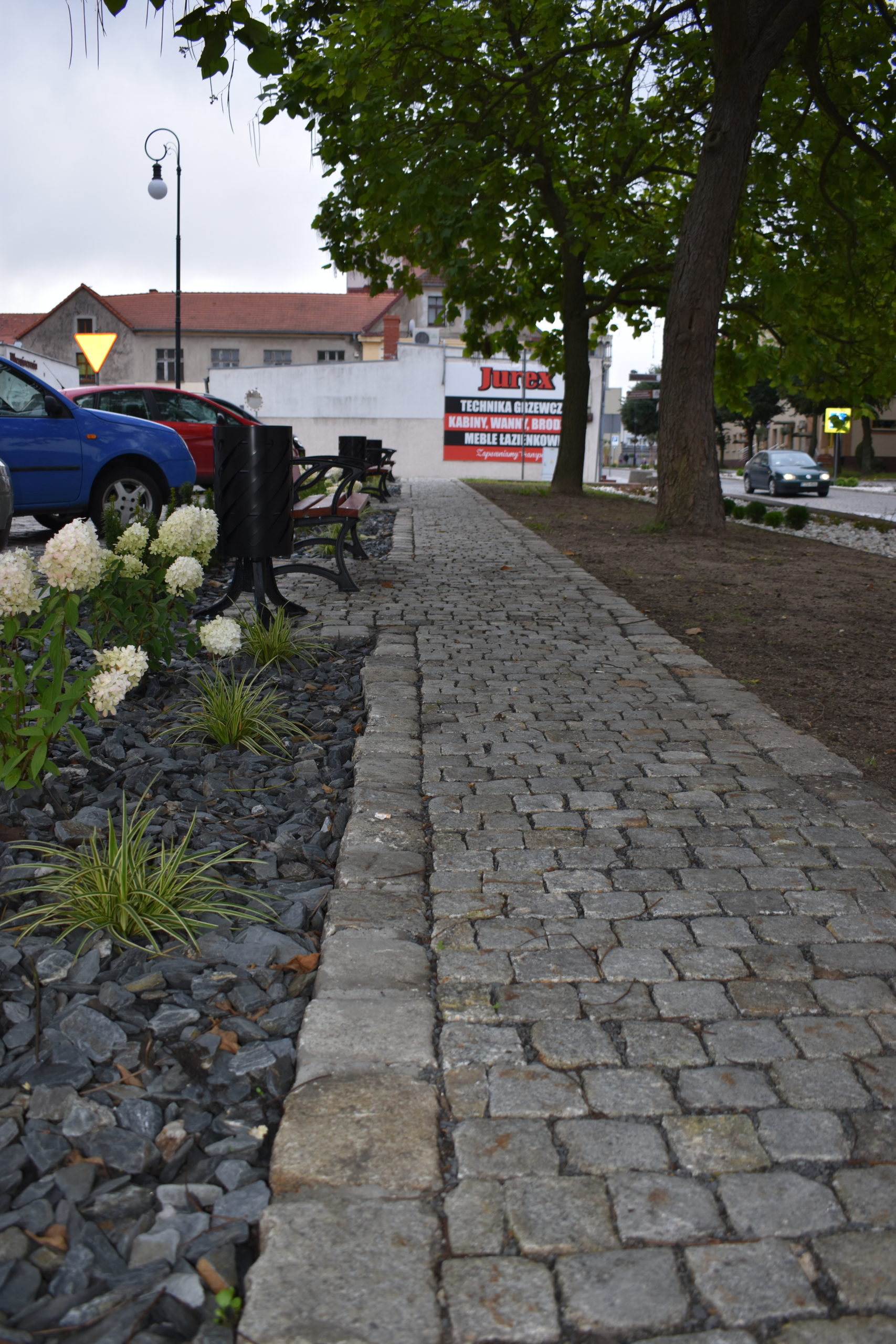 Kolejne zmiany na nowym skwerze przy ulicy Ratuszowej. W rejonie parkingu postawione ławki i kosze na śmieci. W cieniu drzew stworzono miejsce odpowiednie na odpoczynek w trakcie wędrówek po naszym pięknym mieście. Już niebawem całość uzupełniona zostanie trawą oraz cebulkami kwiatów, które zaskoczą nas kolorem na wiosnę.