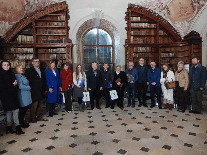 18 listopada w magicznej Bibliotece Poaugustiańskiej nastąpiło wręczenie nagród w konkursie oraz prezentacja najpiękniejszych prac. Gospodarz miejsca Proboszcz Władysław Tasior podziękował za kolejny przejaw zainteresowania obiektem, który podlega obecnie renowacji. Dzięki prowadzonym pracom kolejne pokolenia zyskają możliwość obcowania z zabytkiem, czerpania z niebywałego dziedzictwa, jakie zostało powierzone nam do ochrony. Nawiązując do odbywających się właśnie na terenie Zespołu prac konserwatorskich i restauratorskich prac dr Barbara Bielinis-Kopeć, Lubuski Wojewódzki Konserwator Zabytków podkreśliła, iż ogromną zasługę w ochronie zabytków w Żaganiu ma jego społeczność. Konserwator pogratulowała decyzji o utworzeniu w Żaganiu stanowiska Miejskiego Konserwatora Zabytków. Pełniącemu tę funkcję Bartoszowi Idryjanowi wręczyła Srebrną “Odznakę za opiekę nad zabytkami”, przyznawaną przez Ministra Kultury i Dziedzictwa Narodowego osobom zasłużonym w społecznej opiece nad dobrami kultury lub w działalności konserwatorskiej. Dr Barbara Bielinis-Kopeć podziękowała za opiekę nad zabytkową strukturą Żagania oraz za pieczę nad zakończonym remontem dworca kolejowego. Burmistrz Andrzej Katarzyniec podziękował swojemu pracownikowi za samodzielność i konsekwencję w realizacji podejmowanych działań.