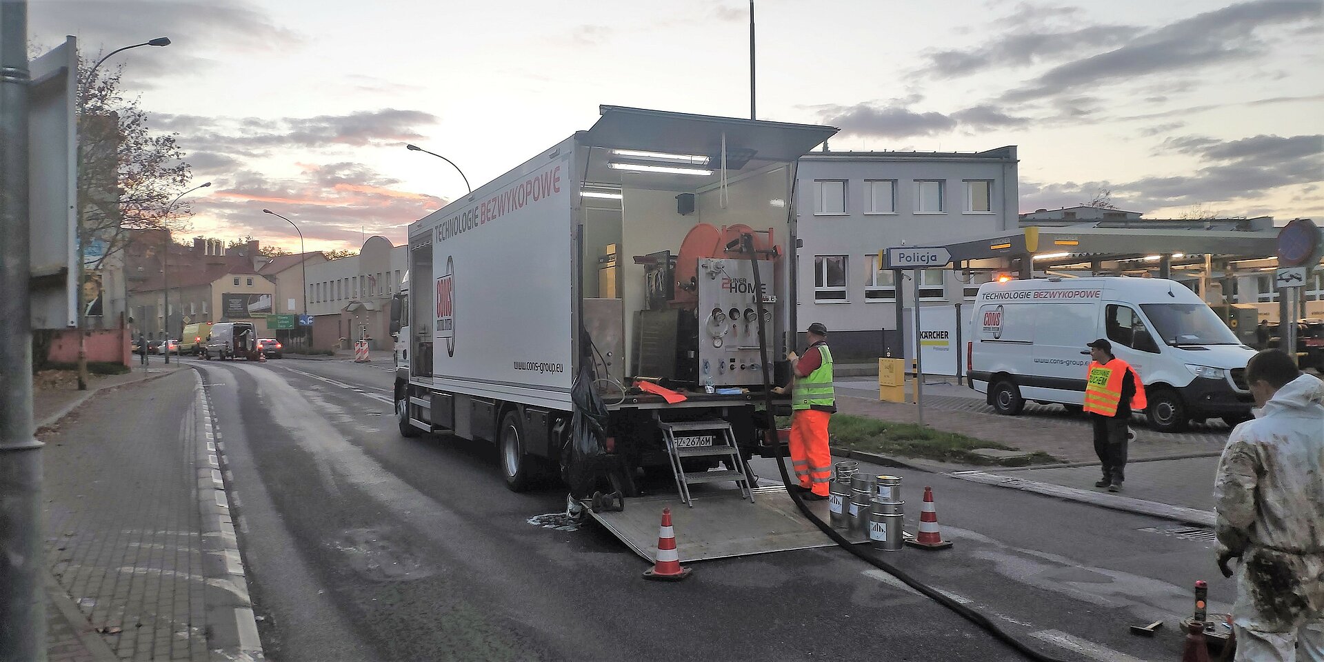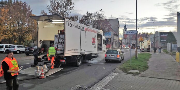 ŻWiK informuje, że w związku z powstaniem zapadliny w jezdni na ul. Armii Krajowej 11 wykonano inspekcję TV kanalizacji sanitarnej. Monitoring potwierdził rozszczelnienie przedwojennej kanalizacji kamionkowej na odcinku sieć ogólnospławna – przyłącze. Z uwagi na głębokość posadowienia kanału oraz miejsce awarii spółka zdecydowała o wykonaniu remontu metodą bezwykopową. Zainstalowano rękaw nasączony żywicą epoksydową przez studzienki włazowe i utwardzono materiał parą wodną pod ciśnieniem. Dodatkowo wykonano punktowe naprawienie głównego kolektora, co wyklucza całkowicie możliwość powstania kolejnej zapadliny. Remont rurociągu przedłuża jego żywotność o kolejne 50 lat. Prace wykonywano przy częściowym zajęciu pasa ruchu drogowego, co w minimalnym stopniu wpływało na ograniczenie i utrudnienie ruchu drogowego.